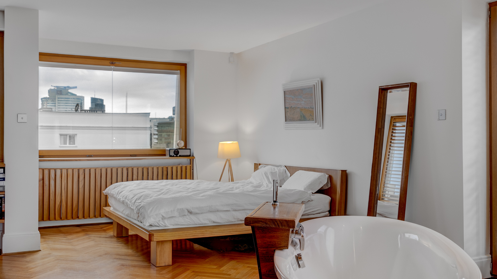 Beautiful floors throughout the flat, it is herringbone laid parquet. Nice open kitchen fully equipped. Huge wooden windows open to the space. Peace and quiet in the centre of Warsaw. Beautiful view of the Saski Garden. A non-obvious flat and for an exceptional client, on the one hand in an inconspicuous older building, and when you enter it the perspective changes completely. Large, bright, very original and carefully finished.