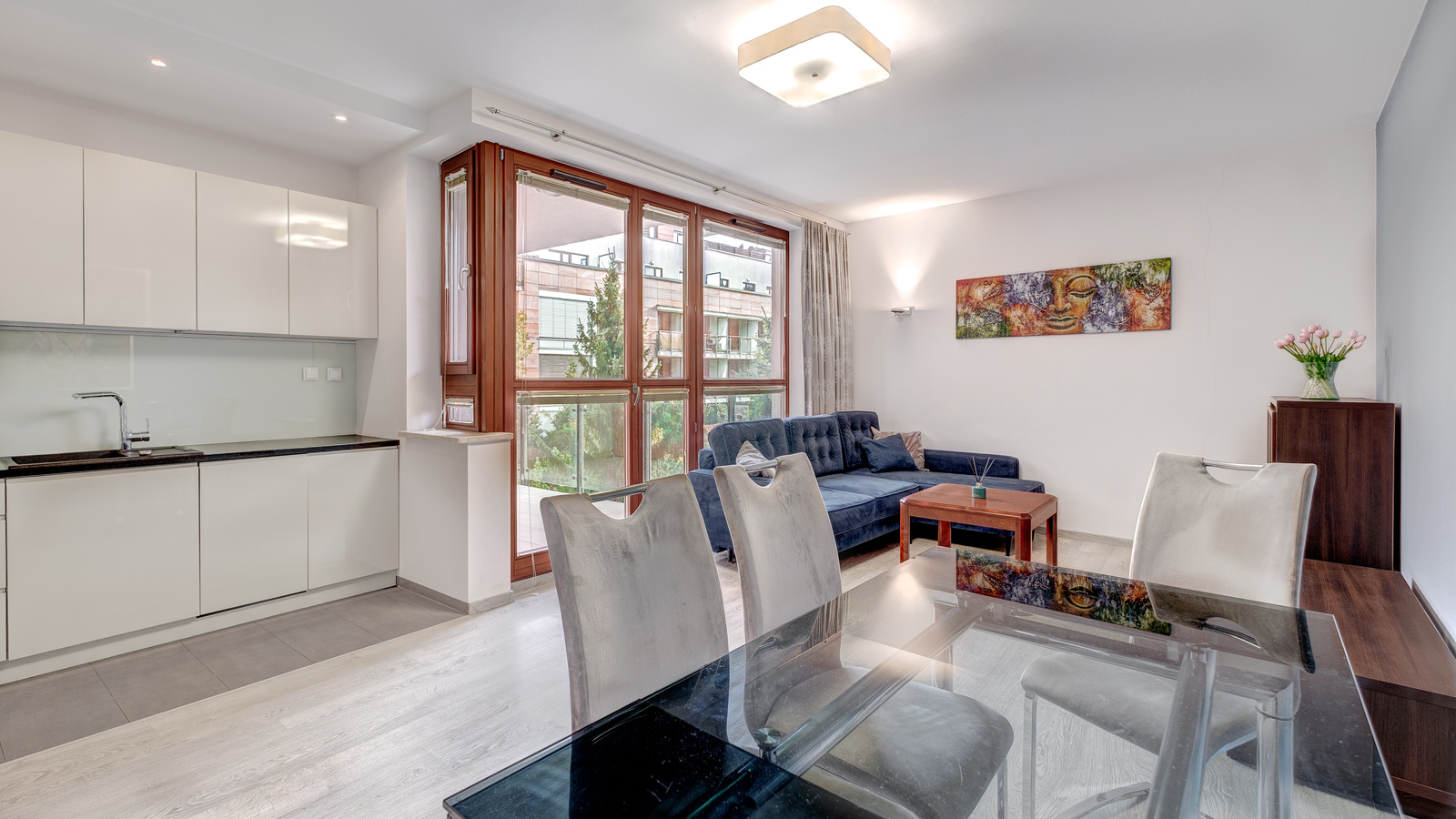 We present to you a comfortable flat for rent located in the heart of Miasteczko Wilanów at Sarmacka Street.