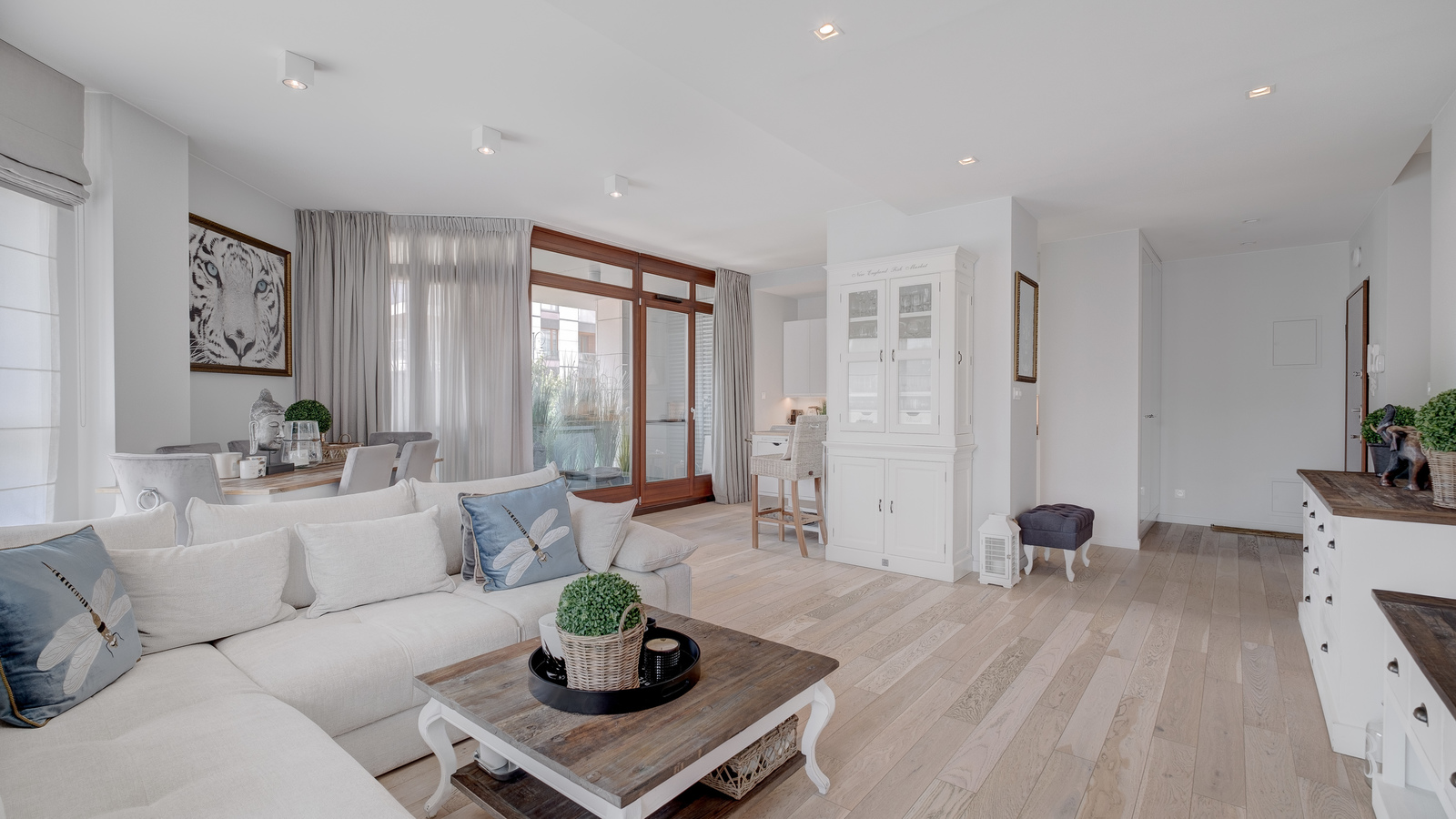 Flat finished to a high standard, nice, bright, ready to move in. All the furniture can stay, just bring your private belongings and enjoy this beautiful flat. Very comfortable and elegant. Ideal for the discerning client. Fantastic location with plenty of space and greenery in front of the windows. Just a few minutes to the palace in Wilanów.