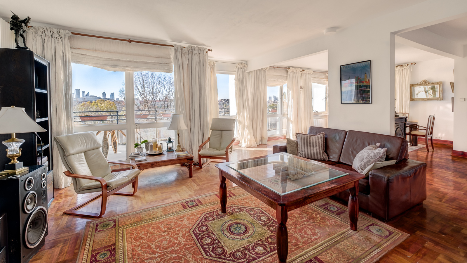 Arguably the greatest asset of this property is the insane view of the Warsaw skyline from virtually every window of this flat.