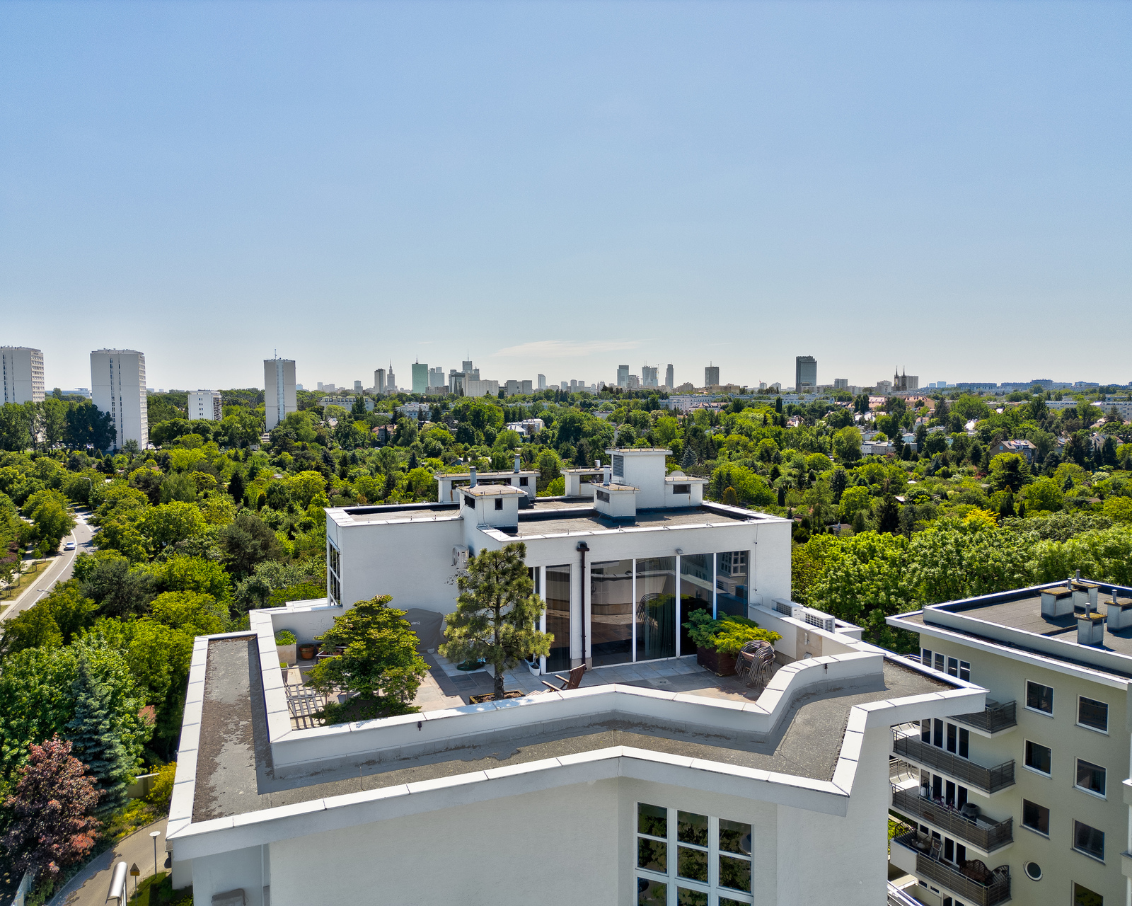 For sale penthouse with magnificent view of Kępa Potocka Park and Łacha Potocka stream. This exceptional property is located in Warsaw's Żoliborz on Gwiaździsta Street.