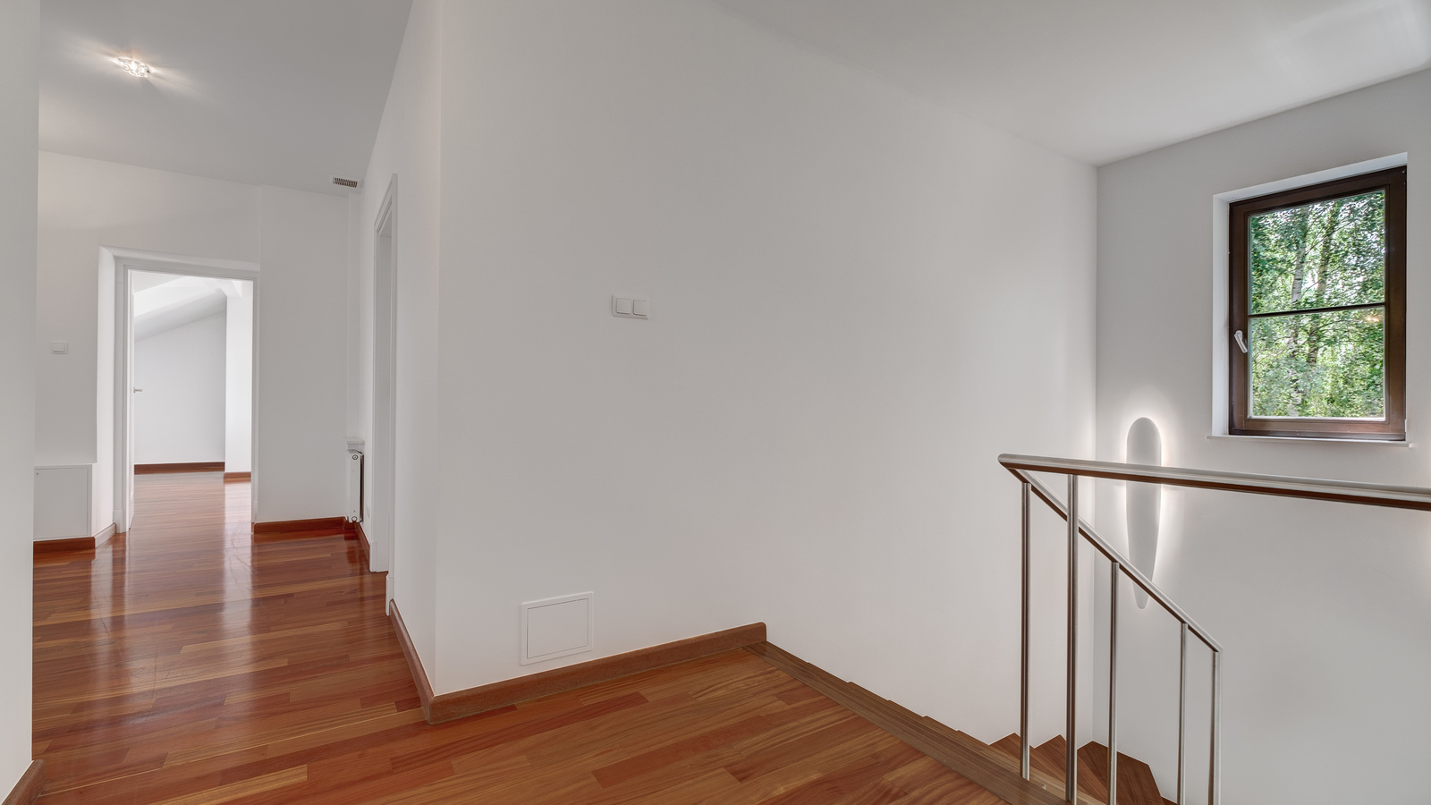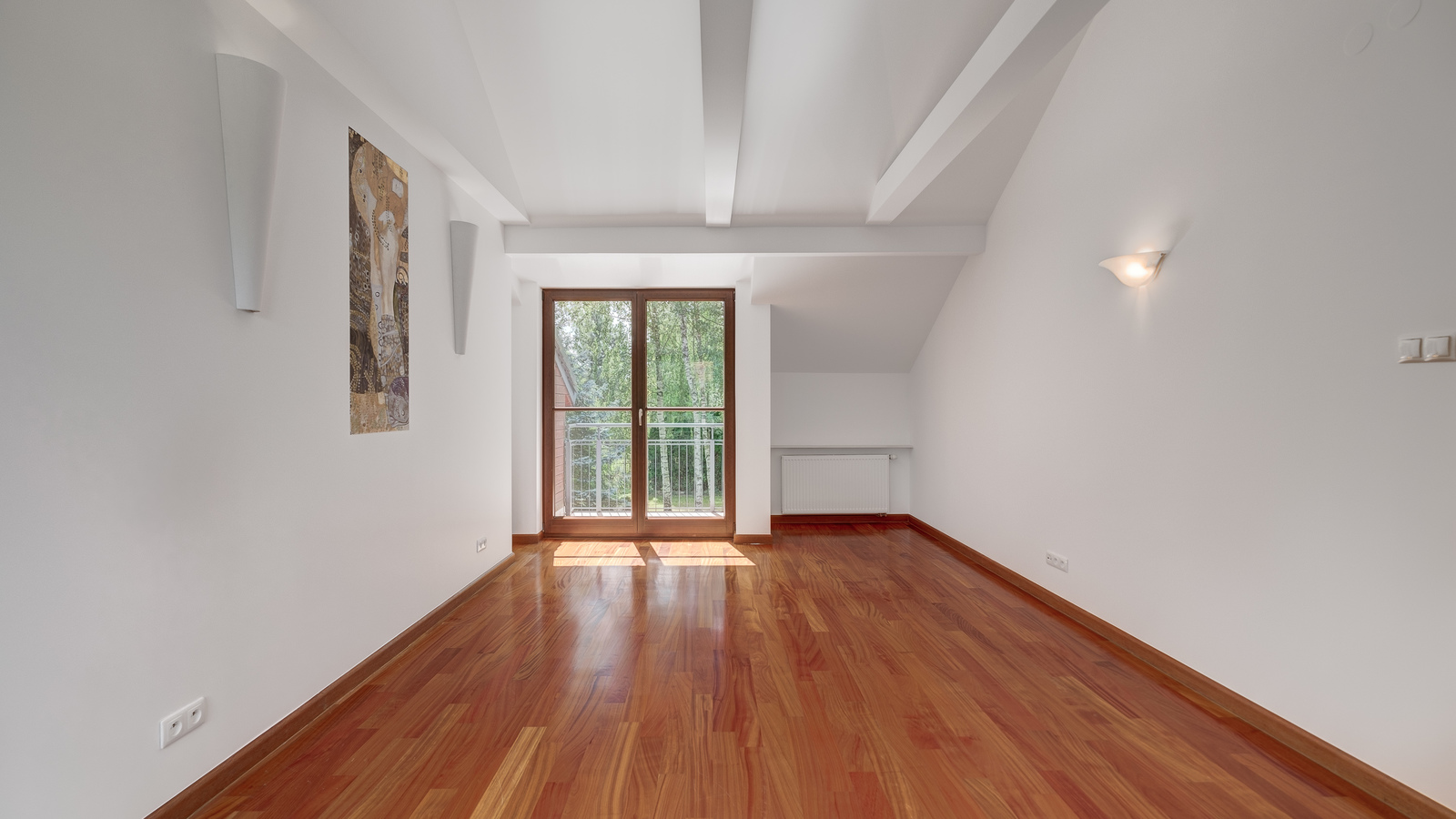 The house has been refreshed and is ready to move in. Very spacious and comfortably designed. Large wooden gardens. Beautiful garden with a pine forest. Large wooden 50 metre terrace. Garage for 2 cars. Private court, playground, barbecue area and exit from the development to the forest. Close distance (2km) to Konstancin Jeziorna. Horse stud right next door.