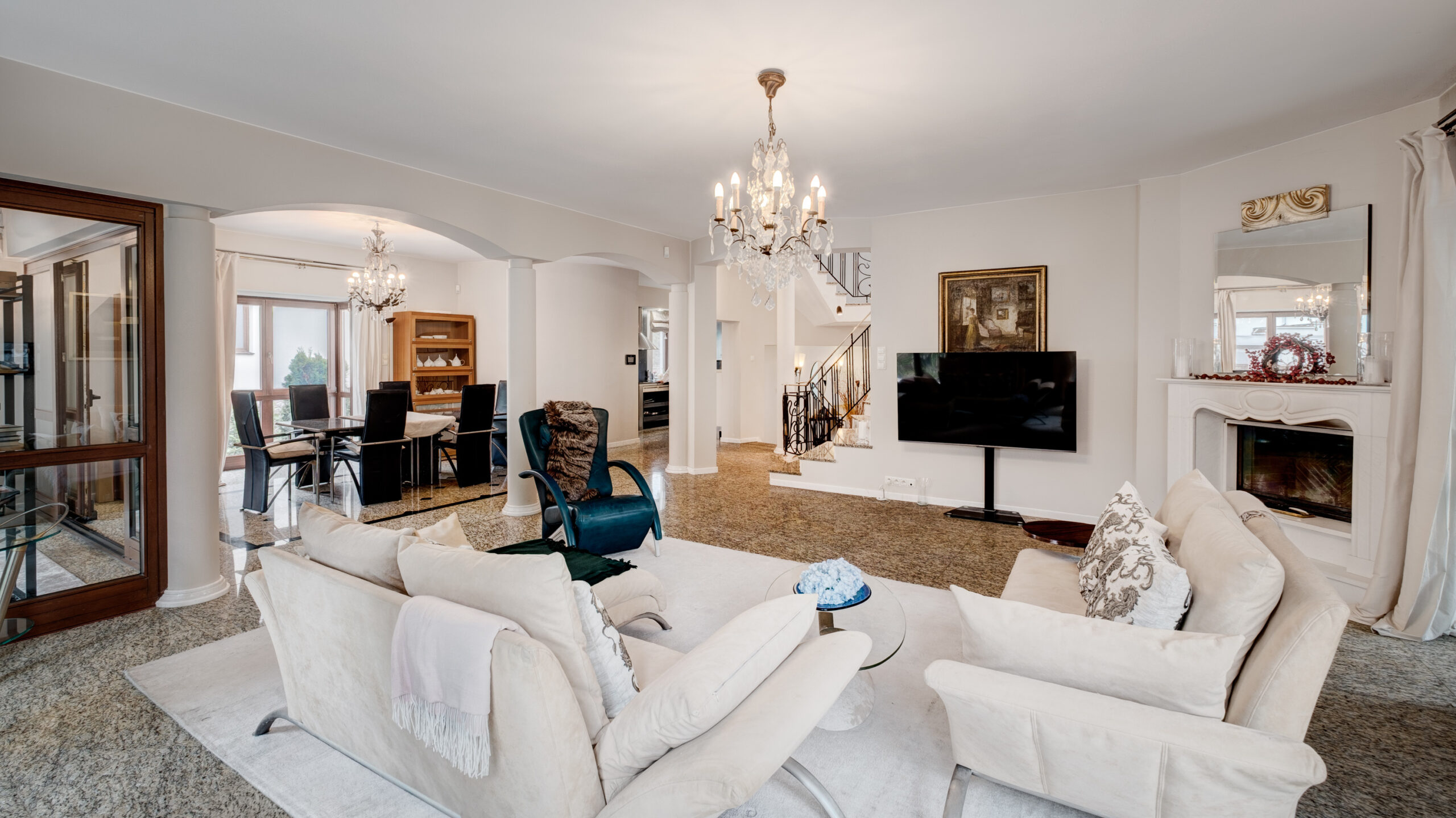 - Szlachetne Materiały: Wnętrza zdobią marmurowe podłogi z instalacją ogrzewania podłogowego oraz reprezentacyjne, marmurowe schody z ręcznie kutymi balustradami.