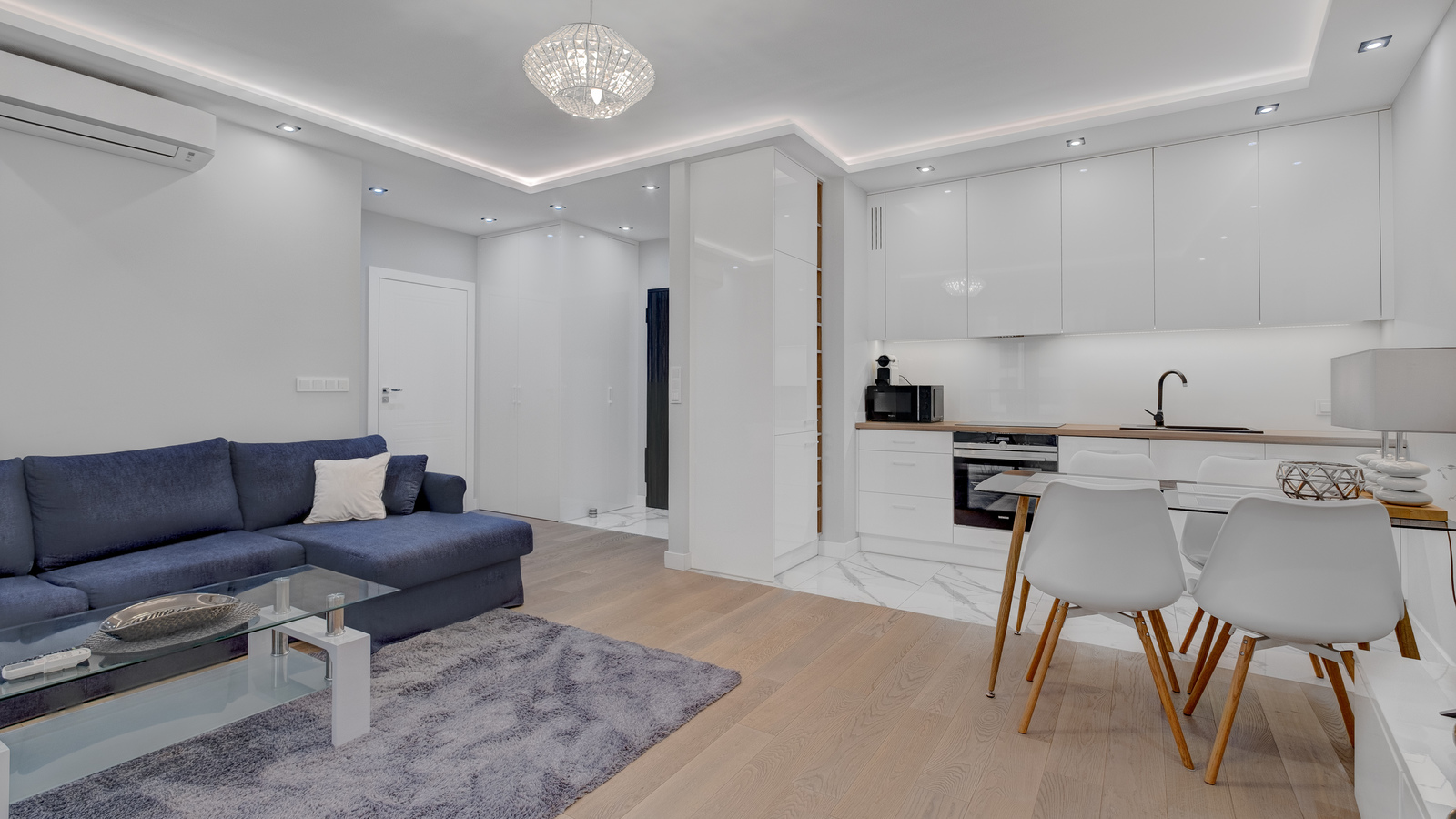 Mieszkanie zostało zaprojektowane przez architekta z pełną starannością oraz dbałością o funkcjonalny układ mebli.