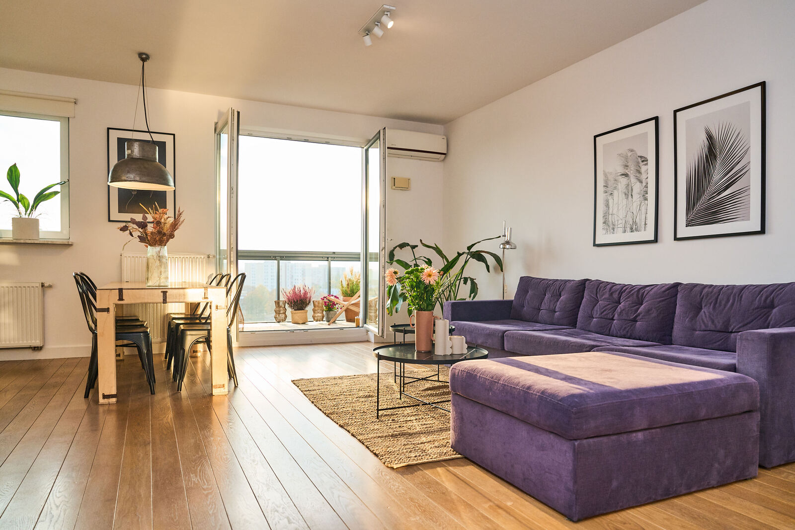 Przedstawiamy Państwu 106 m2 słonecznego apartamentu z niezwykłym klimatem i przepięknym widokiem na panoramę Warszawy. Apartament usytuowany pomiędzy Saską Kępą, a nowoczesną częścią Gocławia z bardzo dobrym dojazdem do centrum.