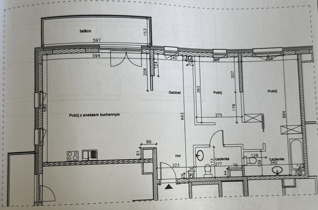 * Salonu z aneksem kuchennym (31,06 m2) i wyjściem na balkon (pow. balkonu 9,13 m2)