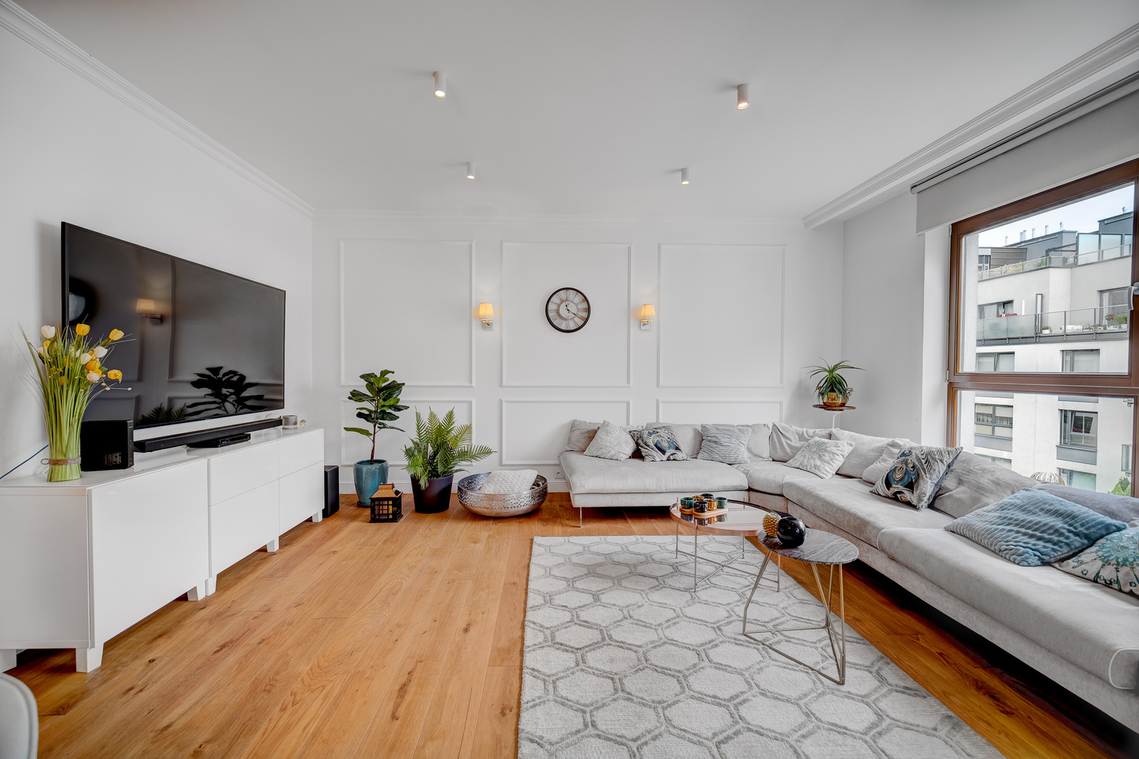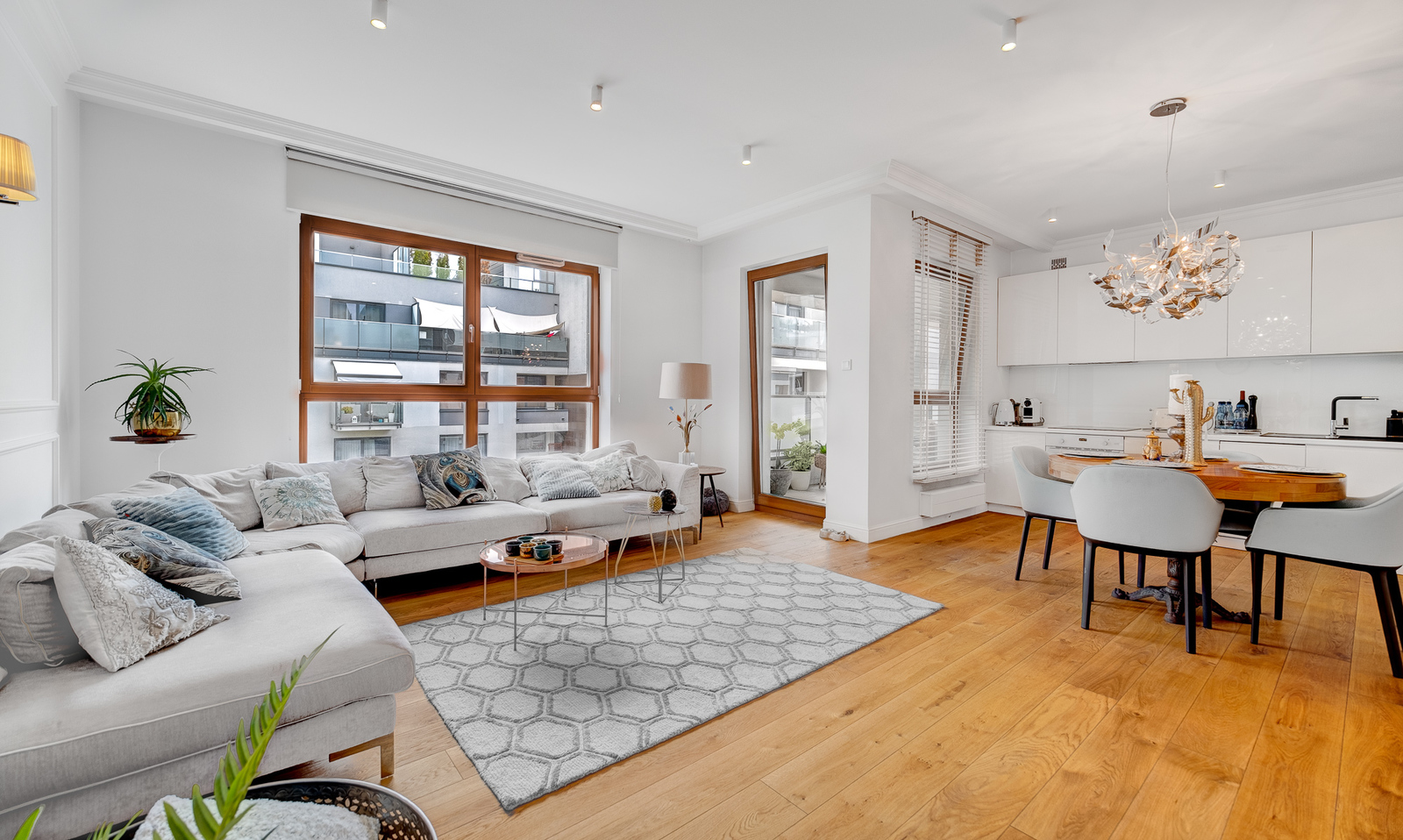 * duży salona z wypoczynkiem i jadalnią
