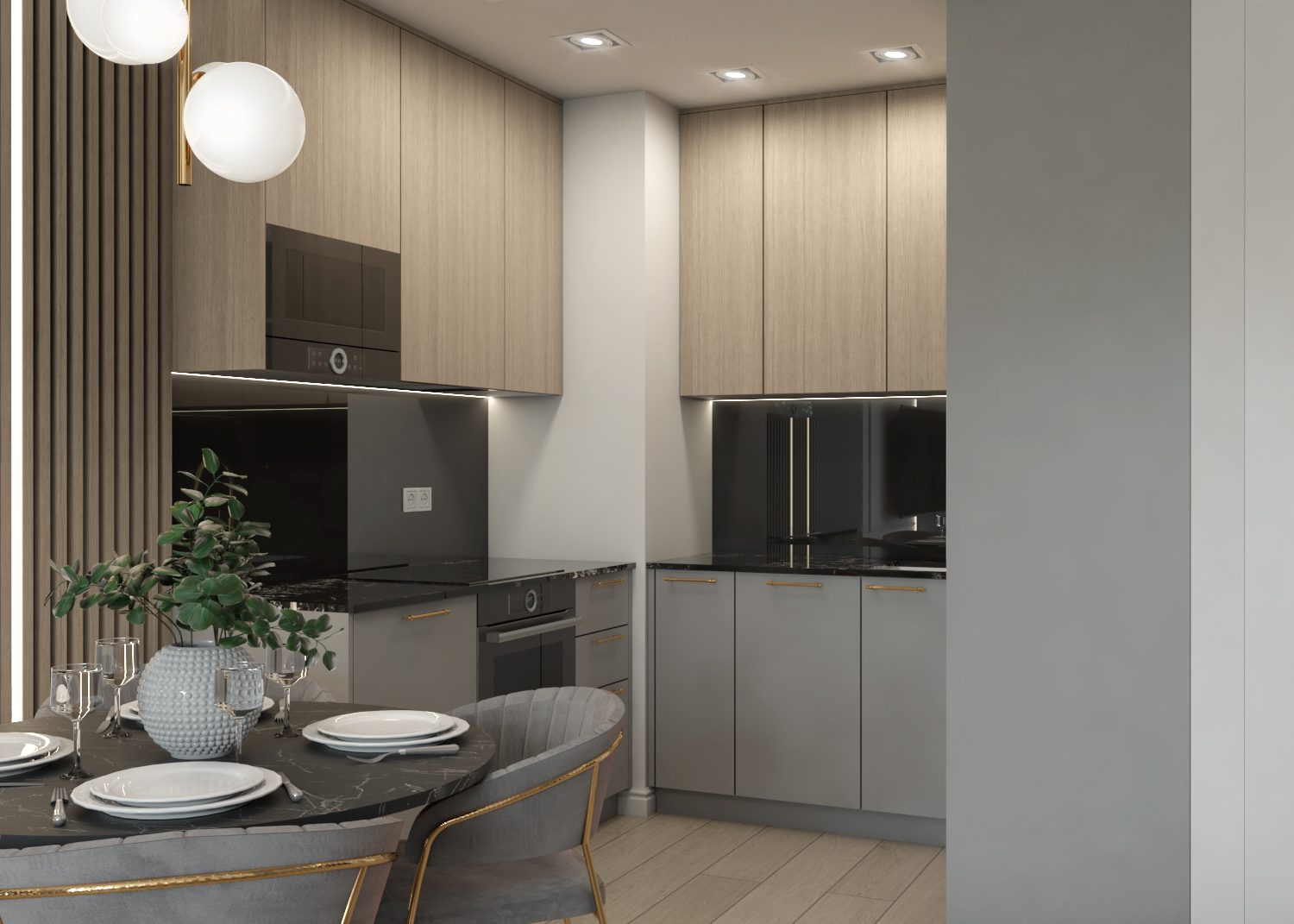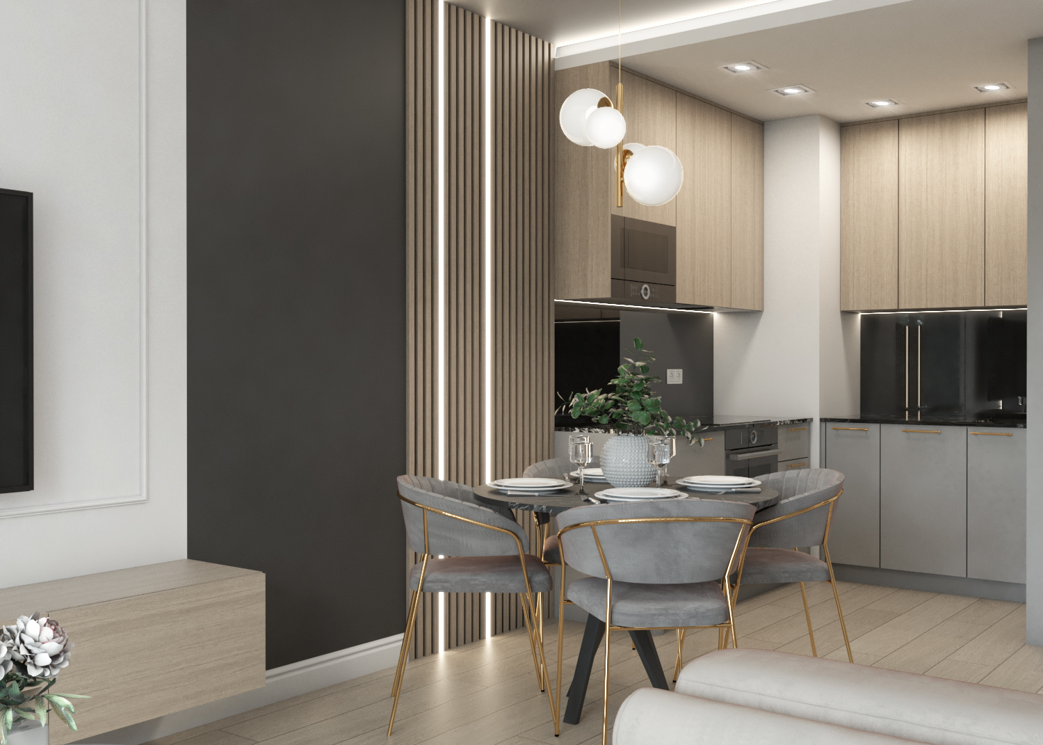 * dużego salonu 25m2 z aneksem kuchennym