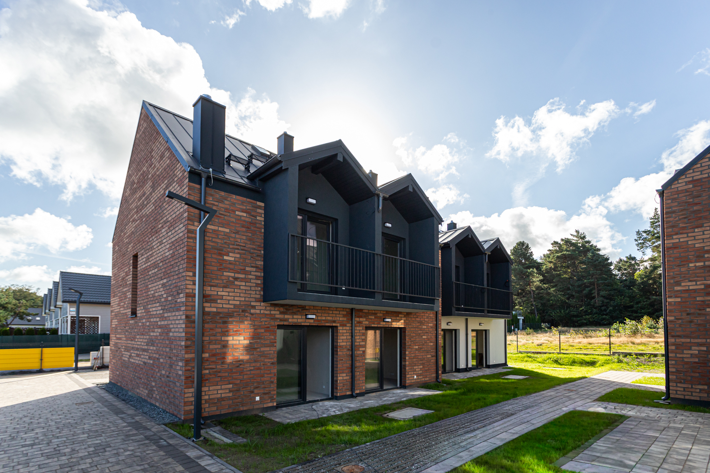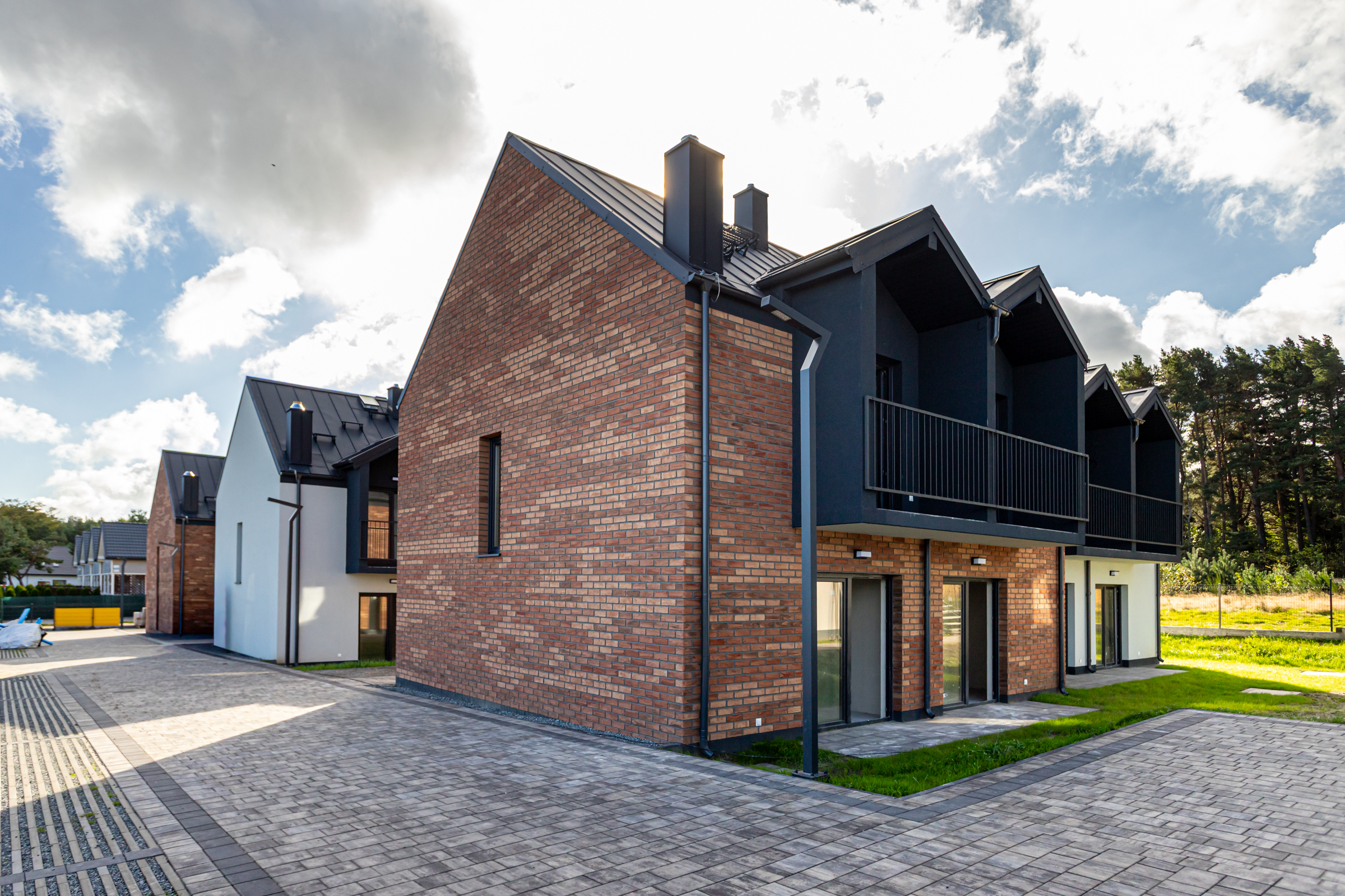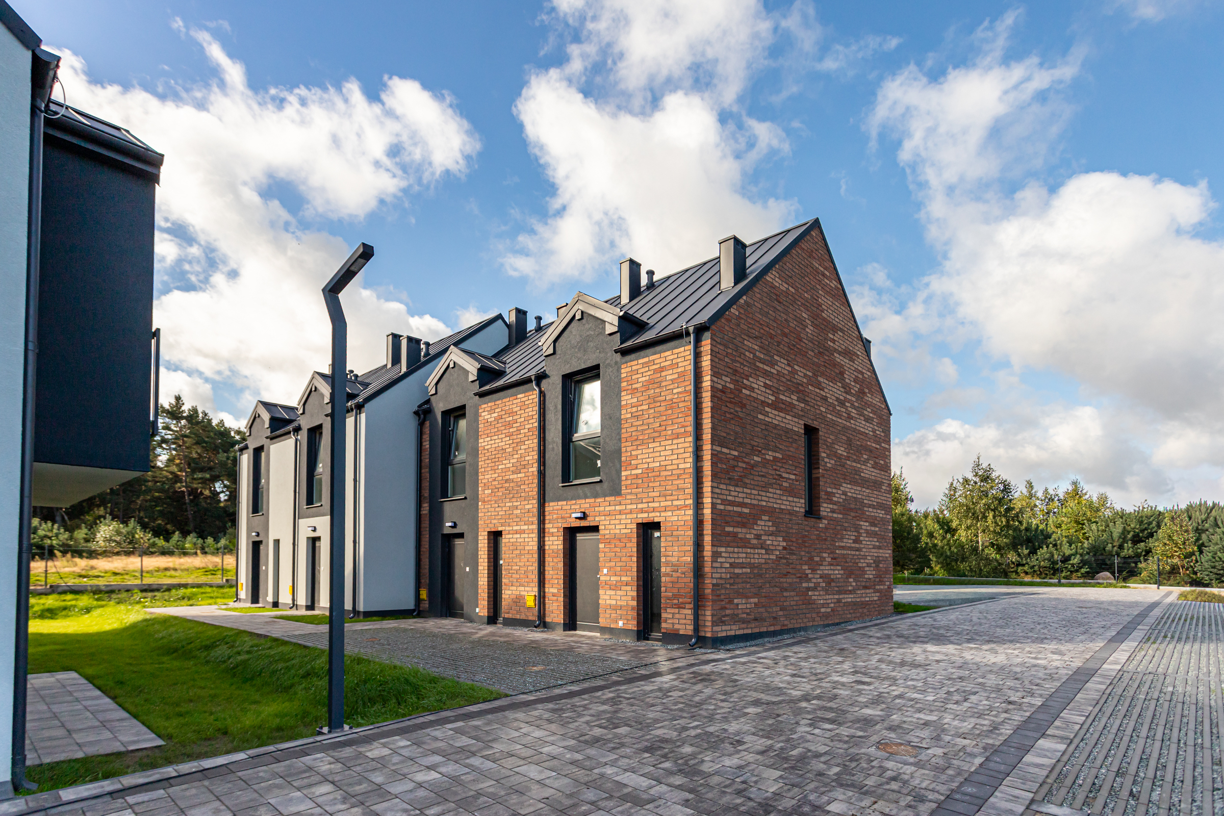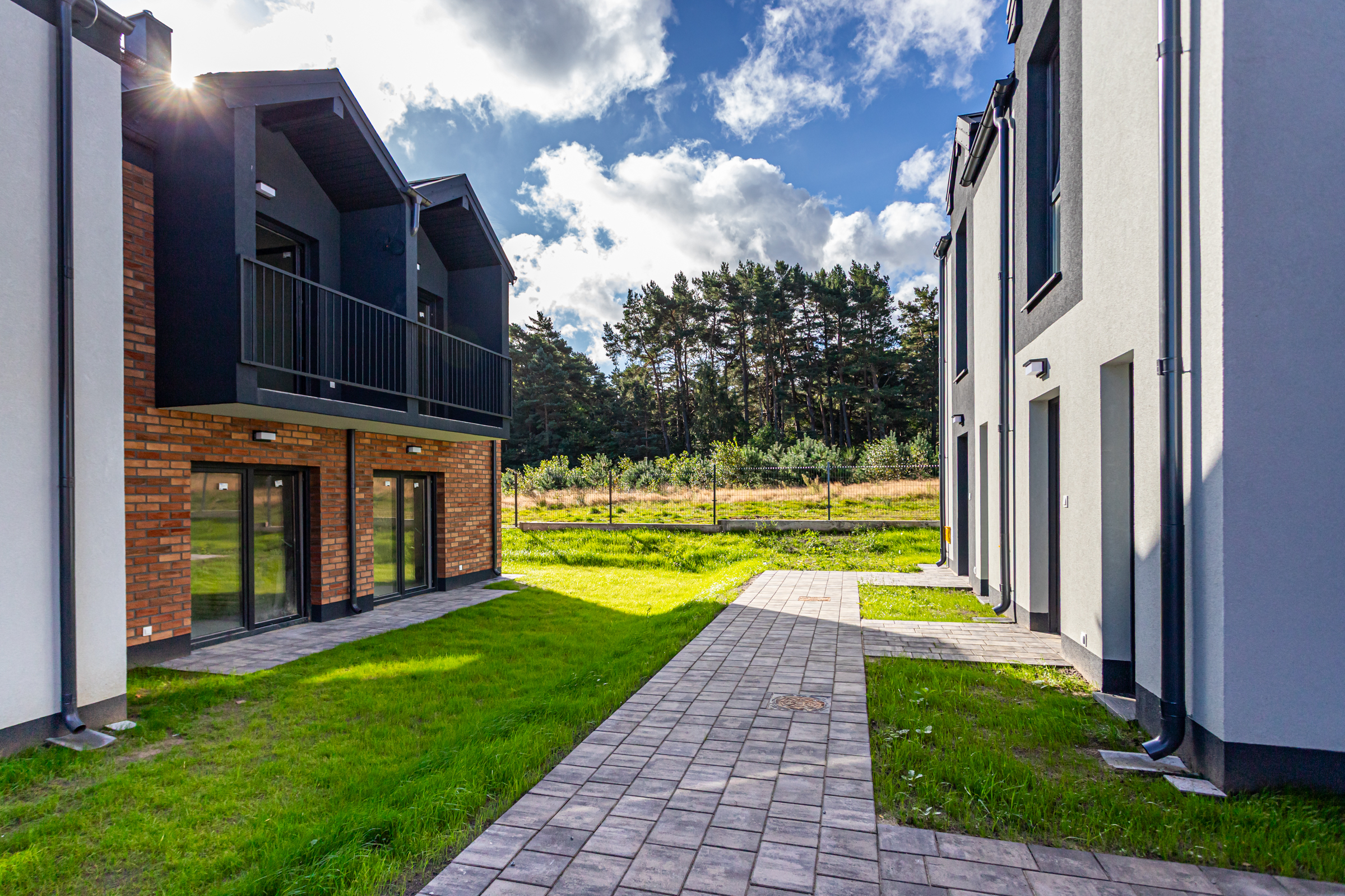 Każdy z dwupoziomowych domów posiada swoje niezależne wejście oraz ogród, gdzie można cieszyć się świeżym powietrzem i widokiem na las. Wnętrza każdego lokalu zaprojektowane są z myślą o wygodzie i funkcjonalności.