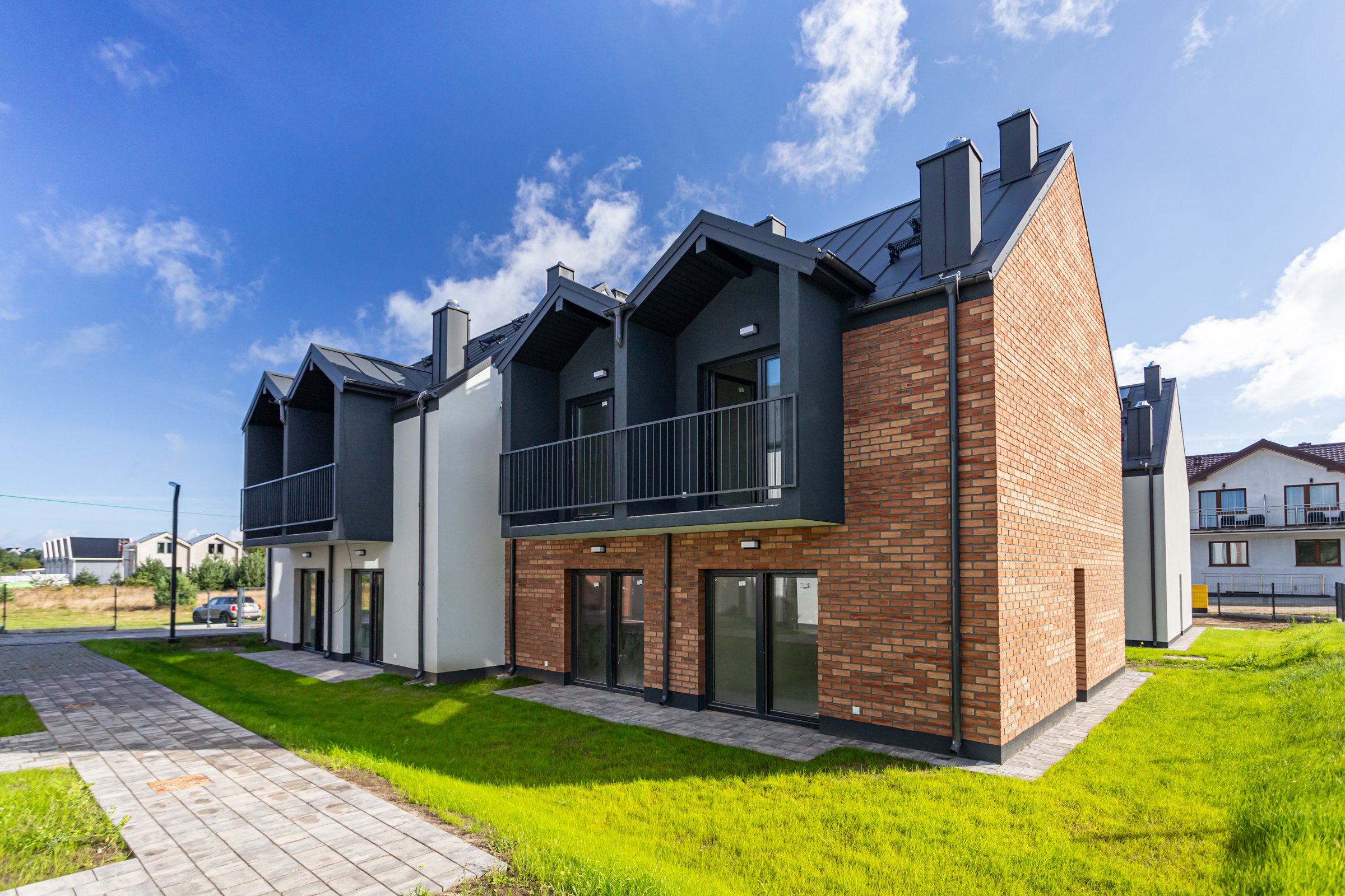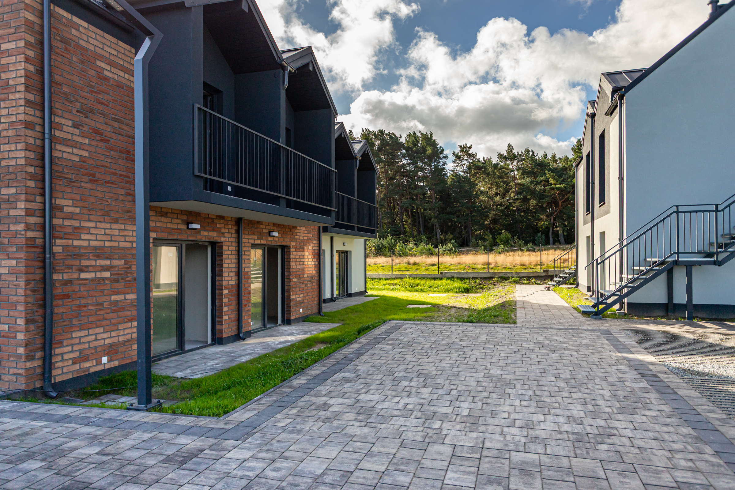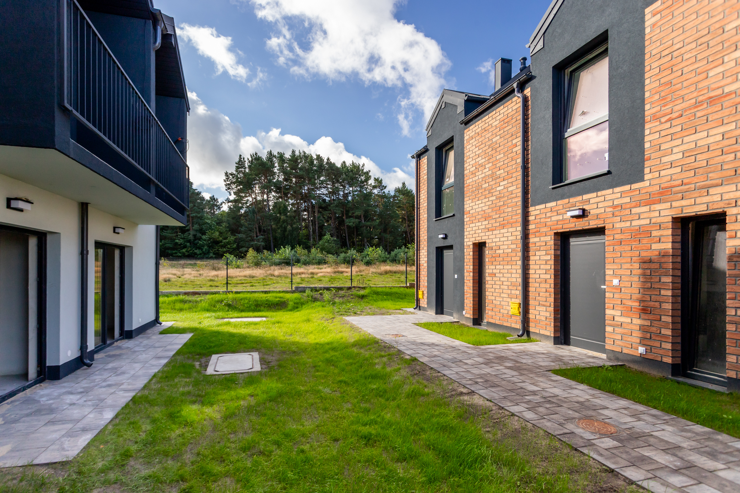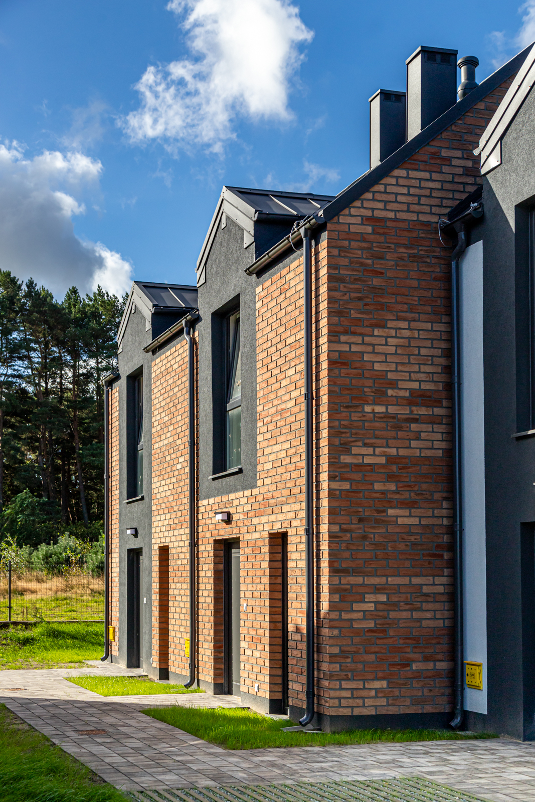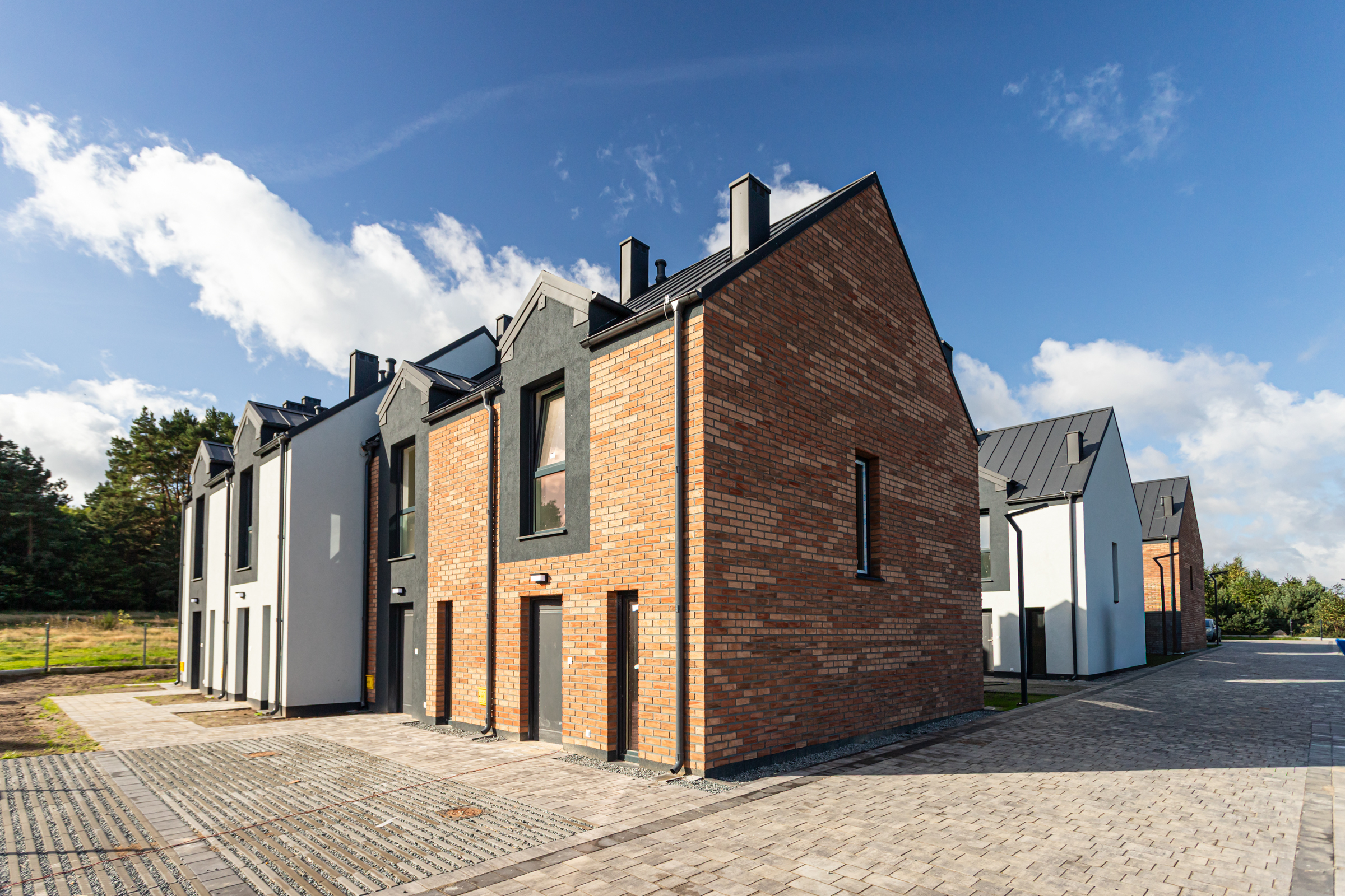 Każdy z dwupoziomowych domów posiada swoje niezależne wejście oraz ogród, gdzie można cieszyć się świeżym powietrzem i widokiem na las. Wnętrza każdego lokalu zaprojektowane są z myślą o wygodzie i funkcjonalności.