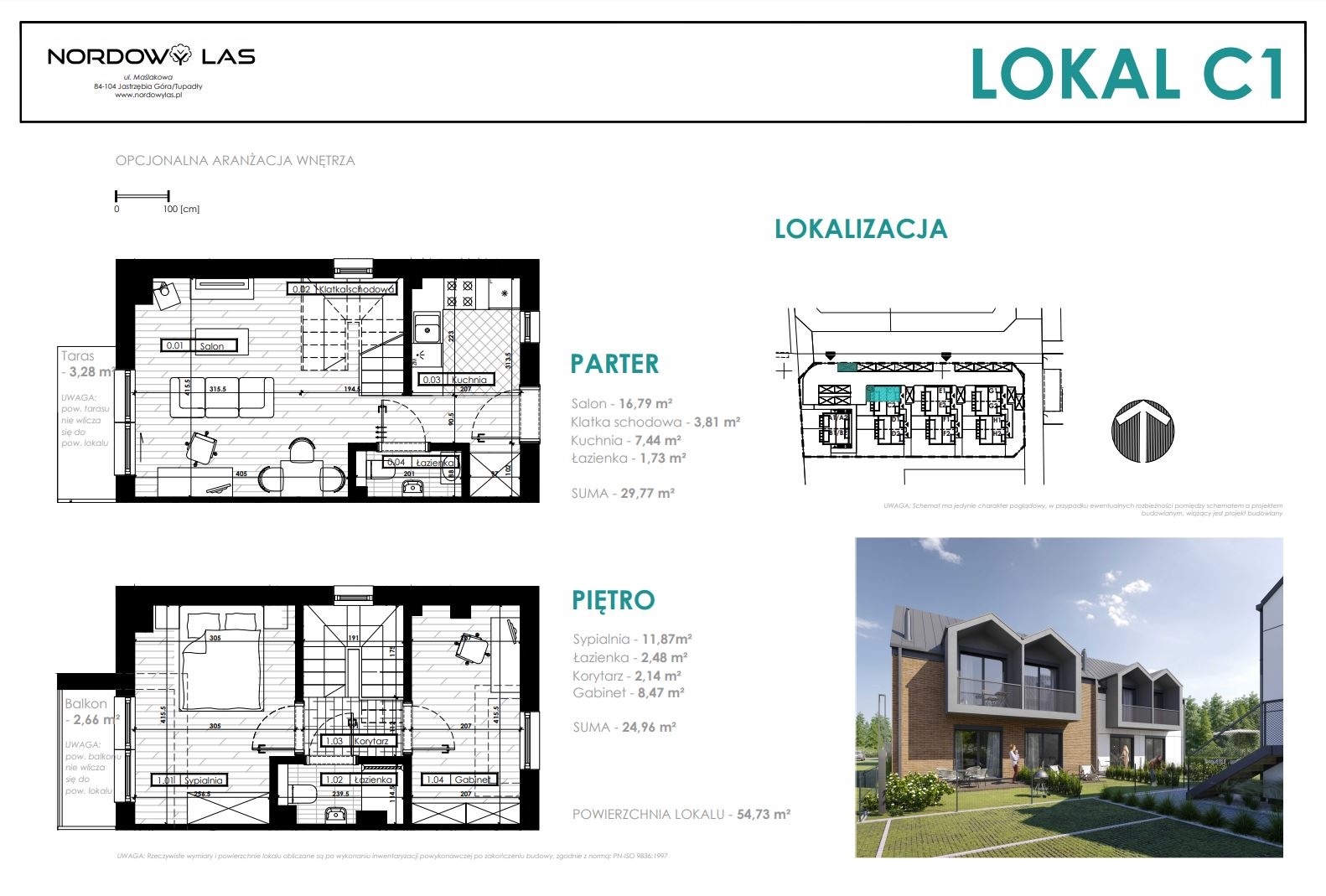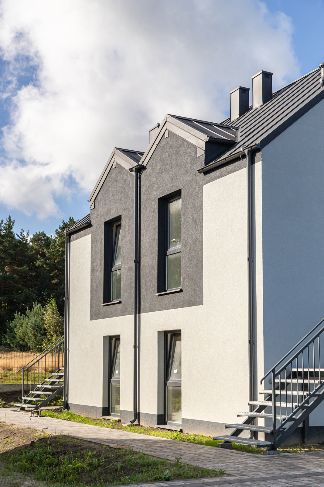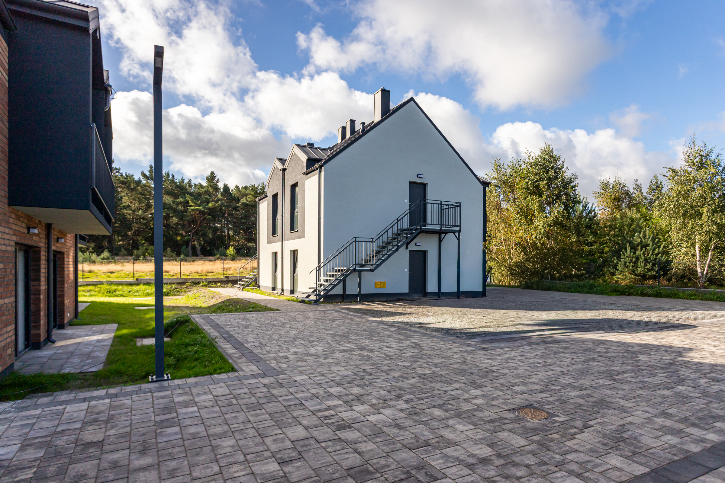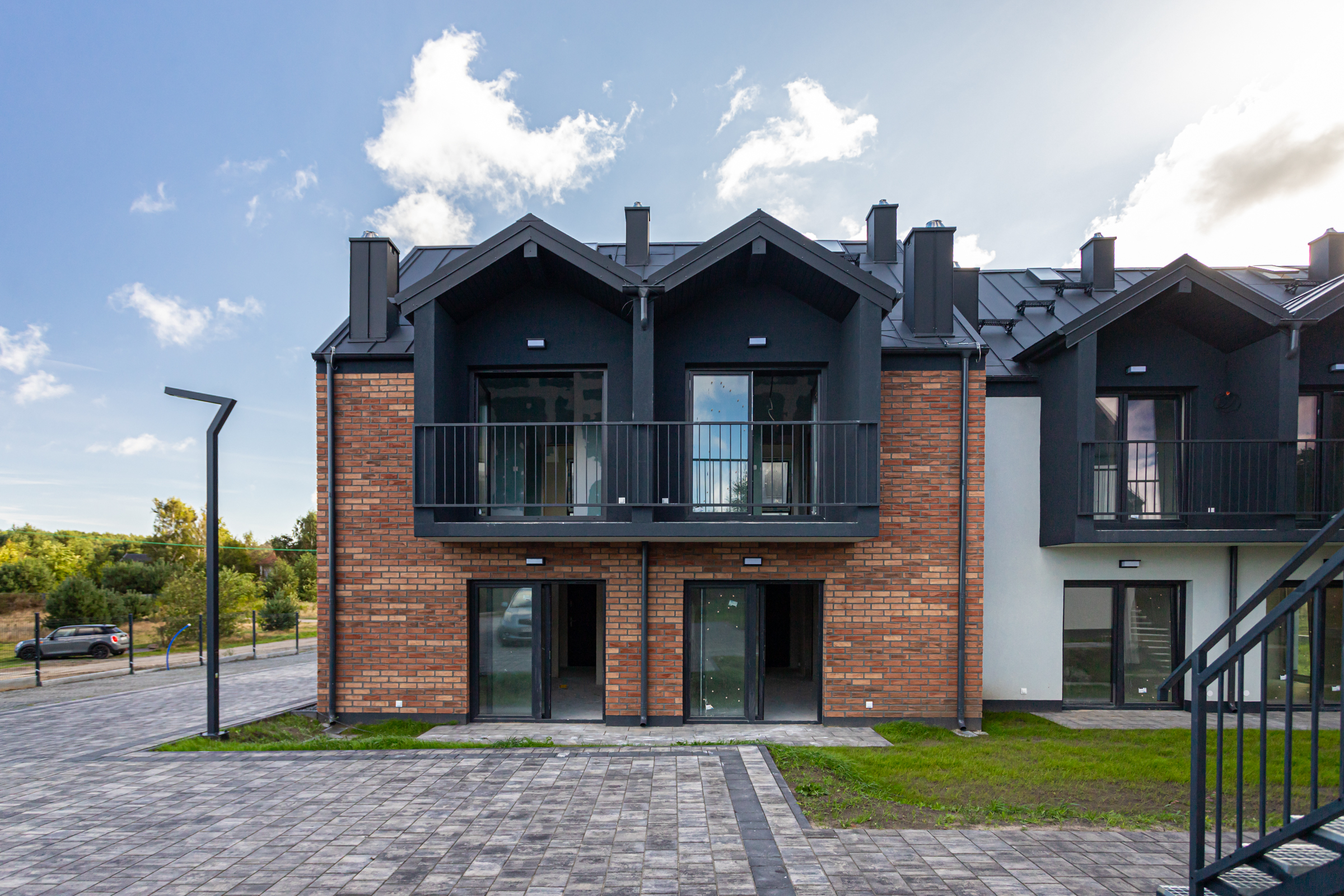 Każdy z dwupoziomowych domów posiada swoje niezależne wejście oraz ogród, gdzie można cieszyć się świeżym powietrzem i widokiem na las. Wnętrza każdego lokalu zaprojektowane są z myślą o wygodzie i funkcjonalności.