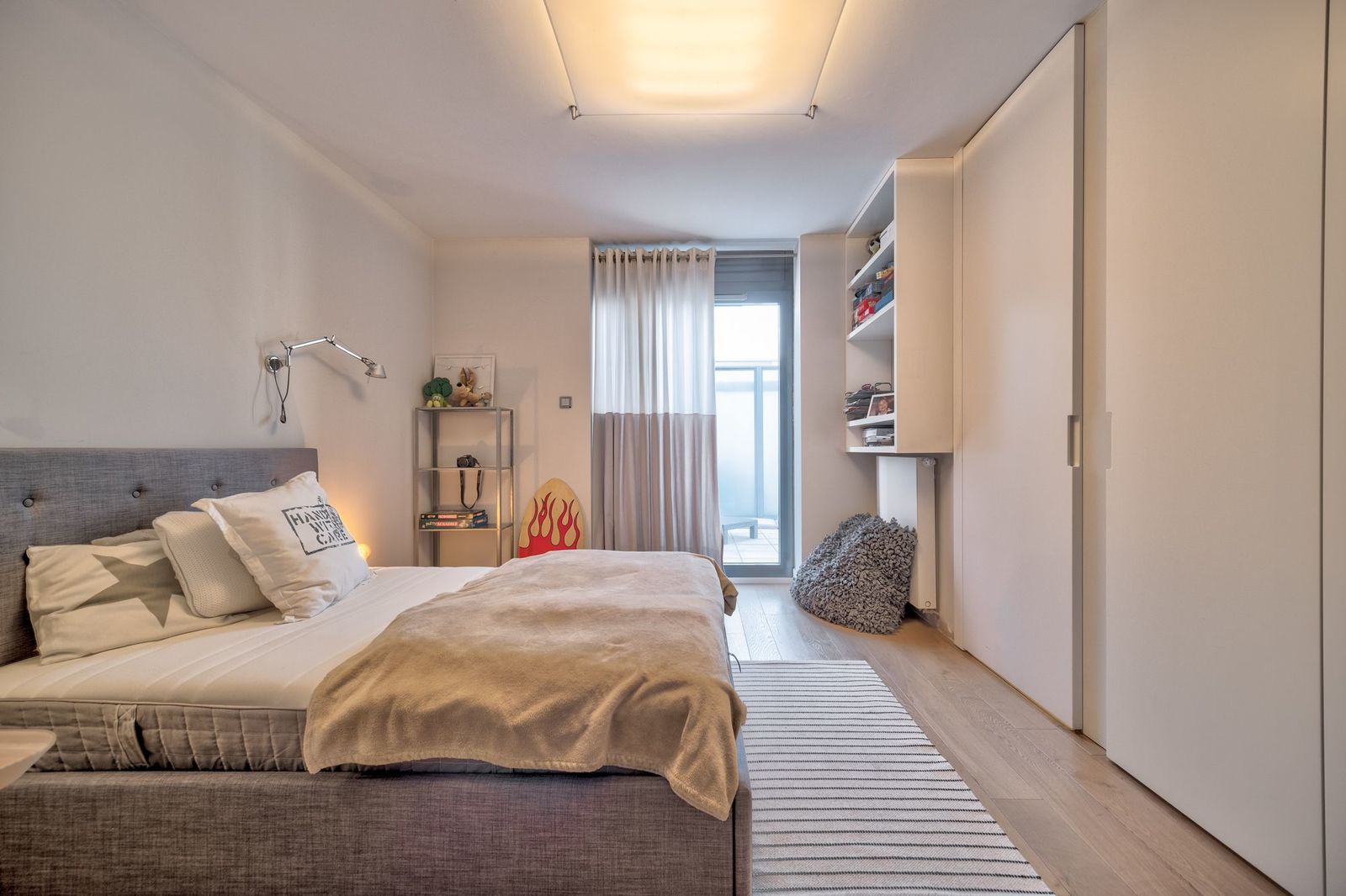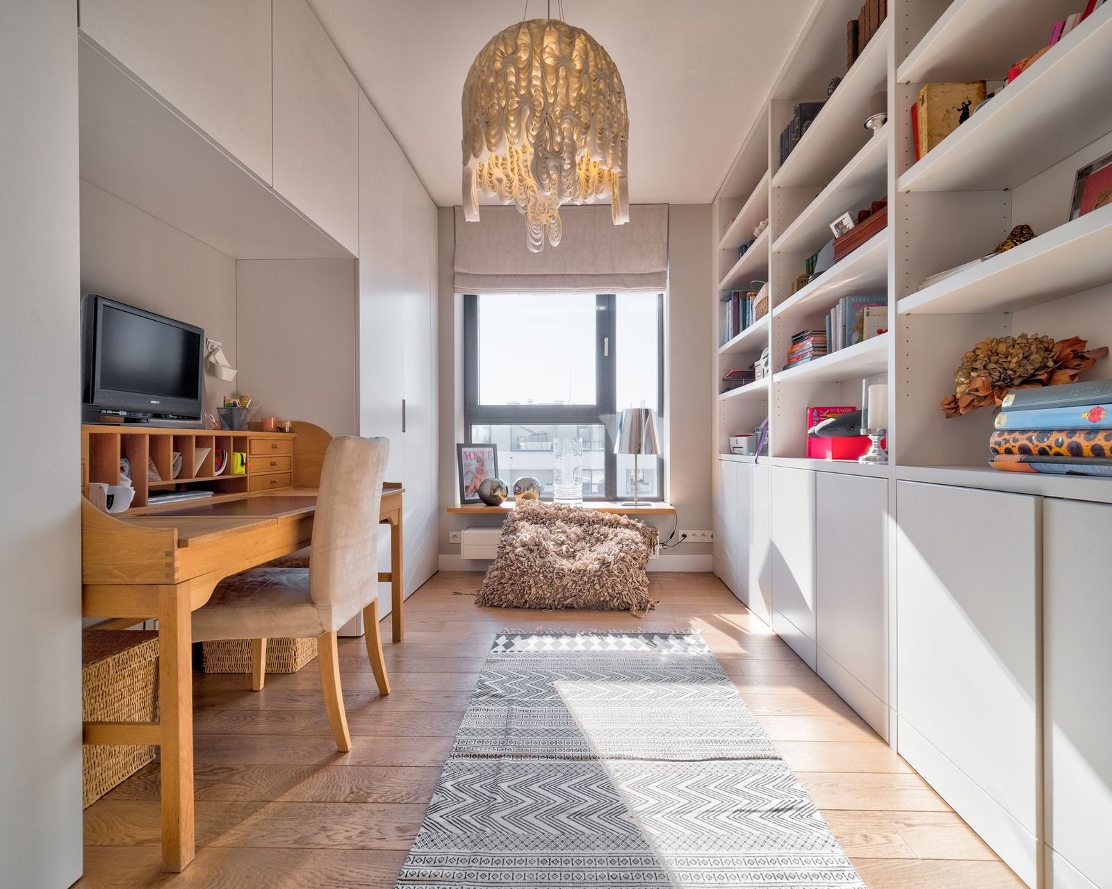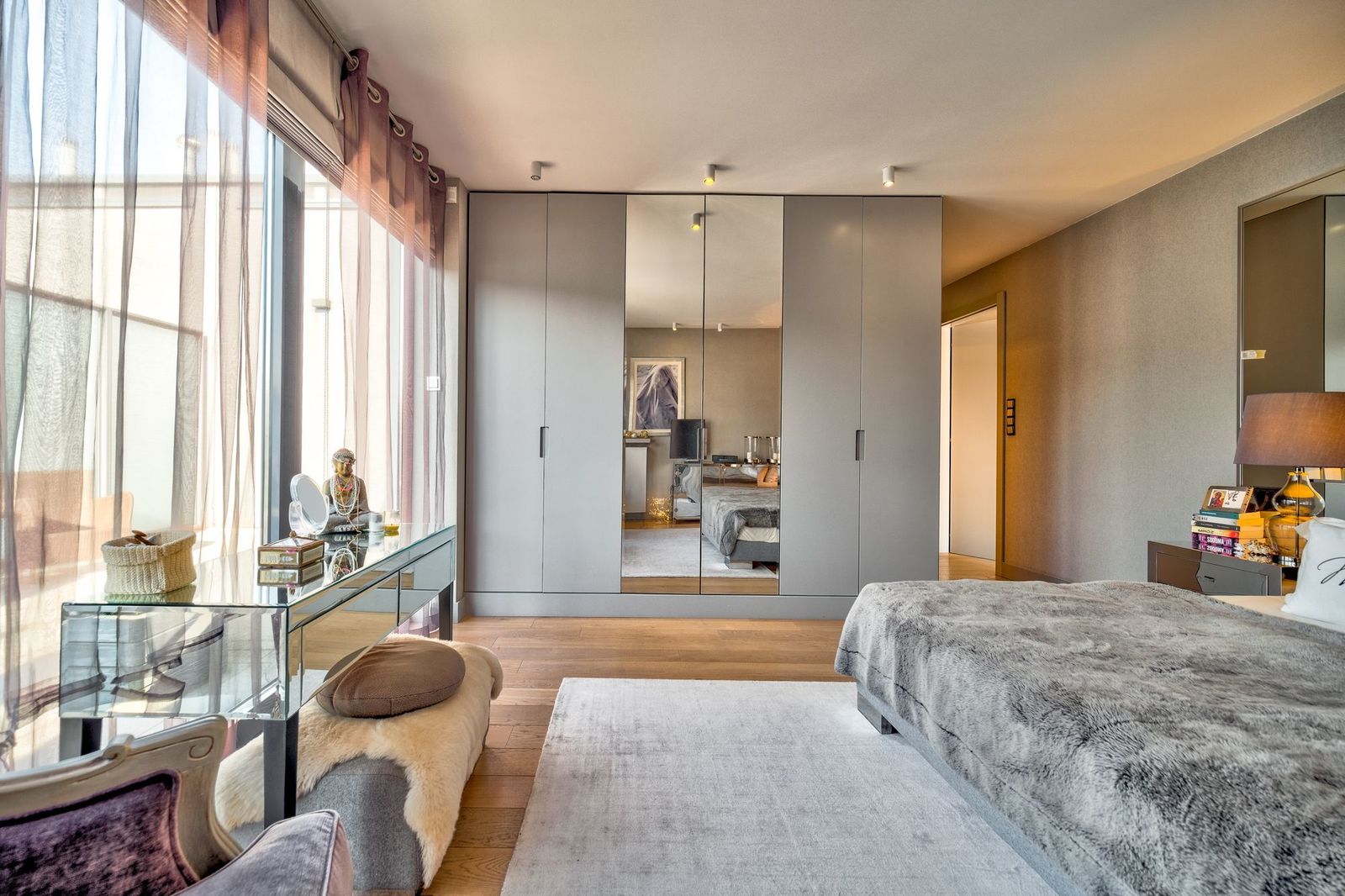 Apartament bardzo komfortowy z wygodnym podziałem na strefę dzienną i prywatną. Ogromna, jasna sypialnia master ze ścianą okien do ziemi wychodzącymi na prywatny taras. Pięknie wykonana stolarka na zamówienie. Bardzo porządne podłogi dębowe, bielone. Elegancki i bardzo jasny. Świetnie doświetlony. Idealna namiastka domu. Fantastyczny dla rodziny z dziećmi. Ostatnie piętro i brak sąsiadów.