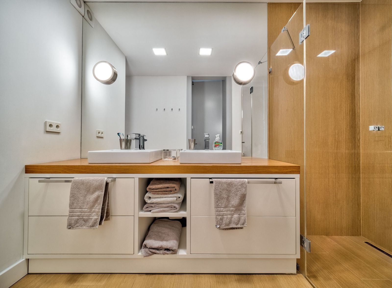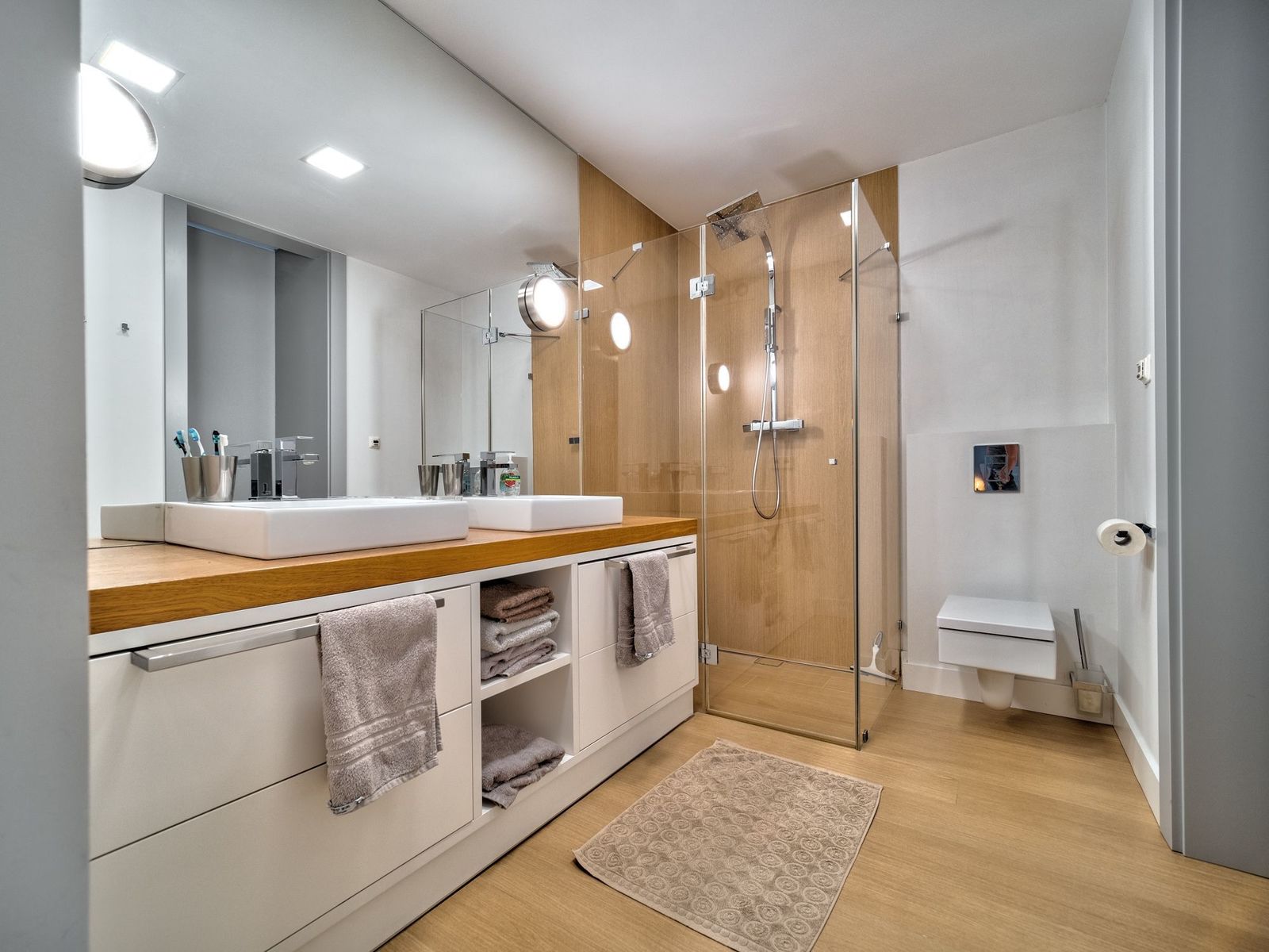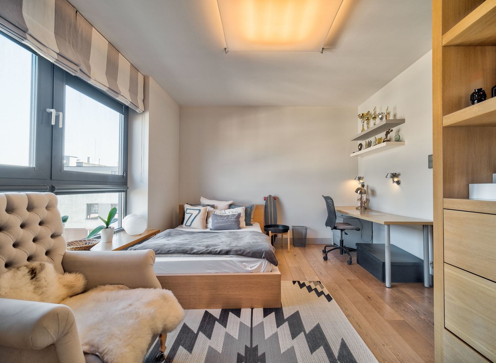 Apartament bardzo komfortowy z wygodnym podziałem na strefę dzienną i prywatną. Ogromna, jasna sypialnia master ze ścianą okien do ziemi wychodzącymi na prywatny taras. Pięknie wykonana stolarka na zamówienie. Bardzo porządne podłogi dębowe, bielone. Elegancki i bardzo jasny. Świetnie doświetlony. Idealna namiastka domu. Fantastyczny dla rodziny z dziećmi. Ostatnie piętro i brak sąsiadów.