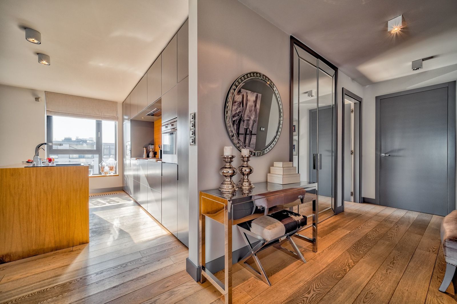 * hol wejściowy z zabudowanymi szafami