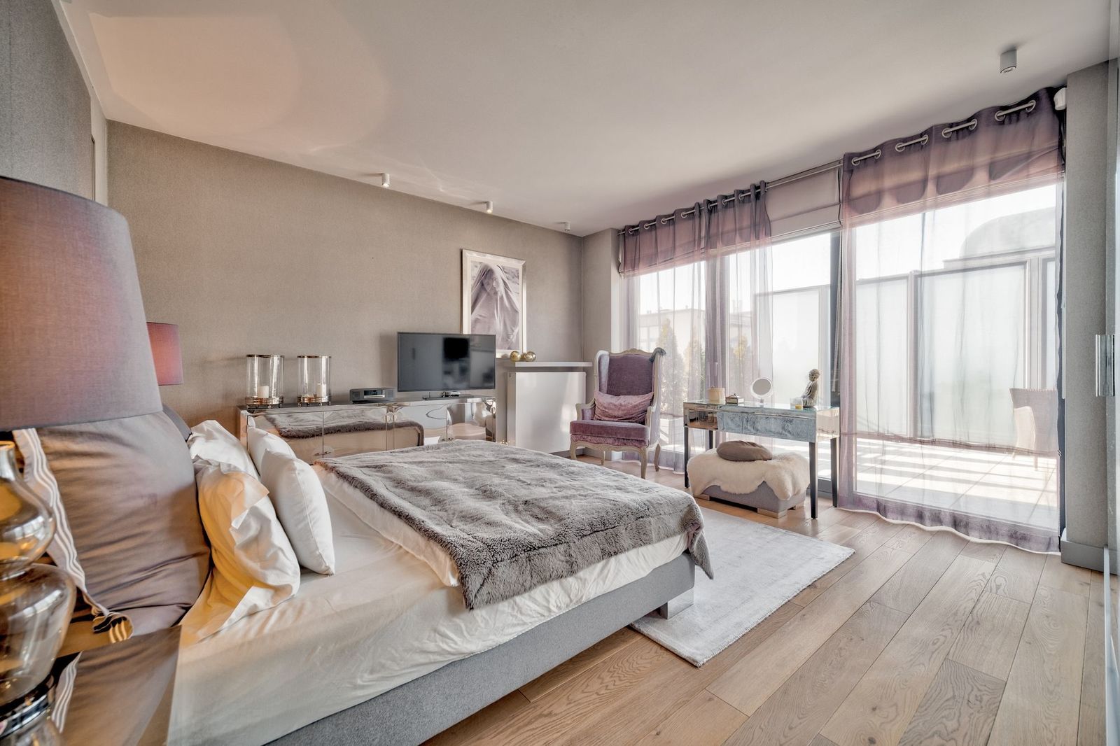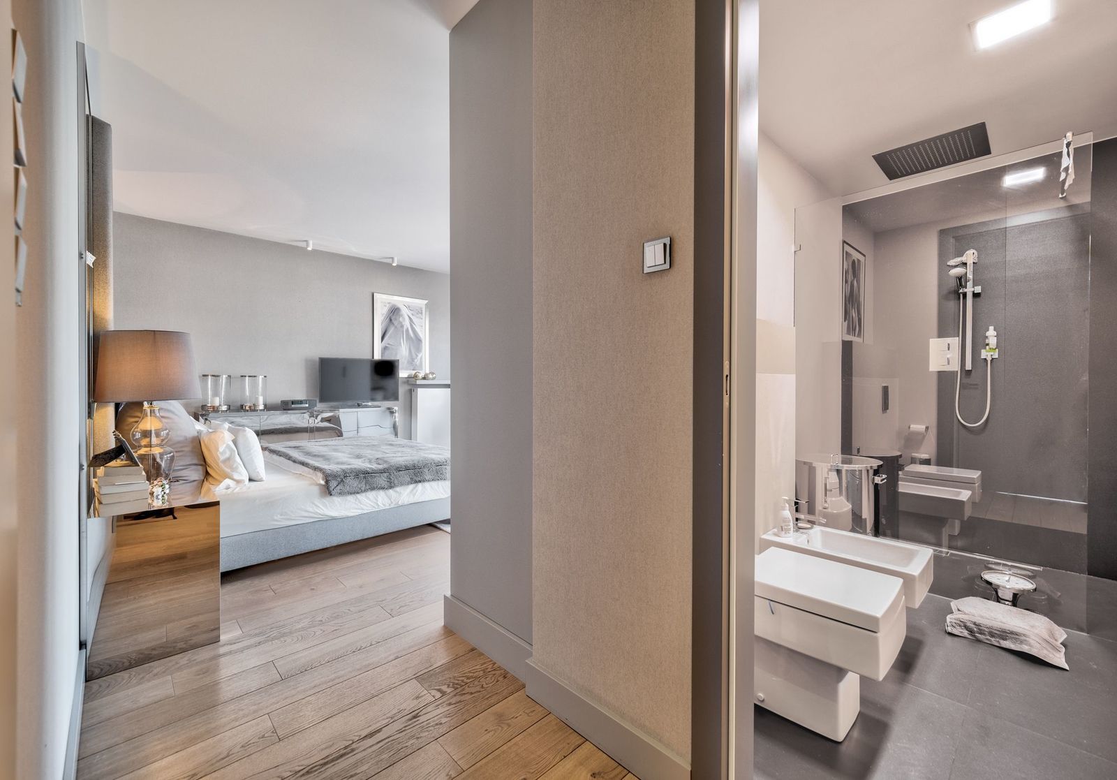 * sypialnia master z własną łazienką oraz tarasem
