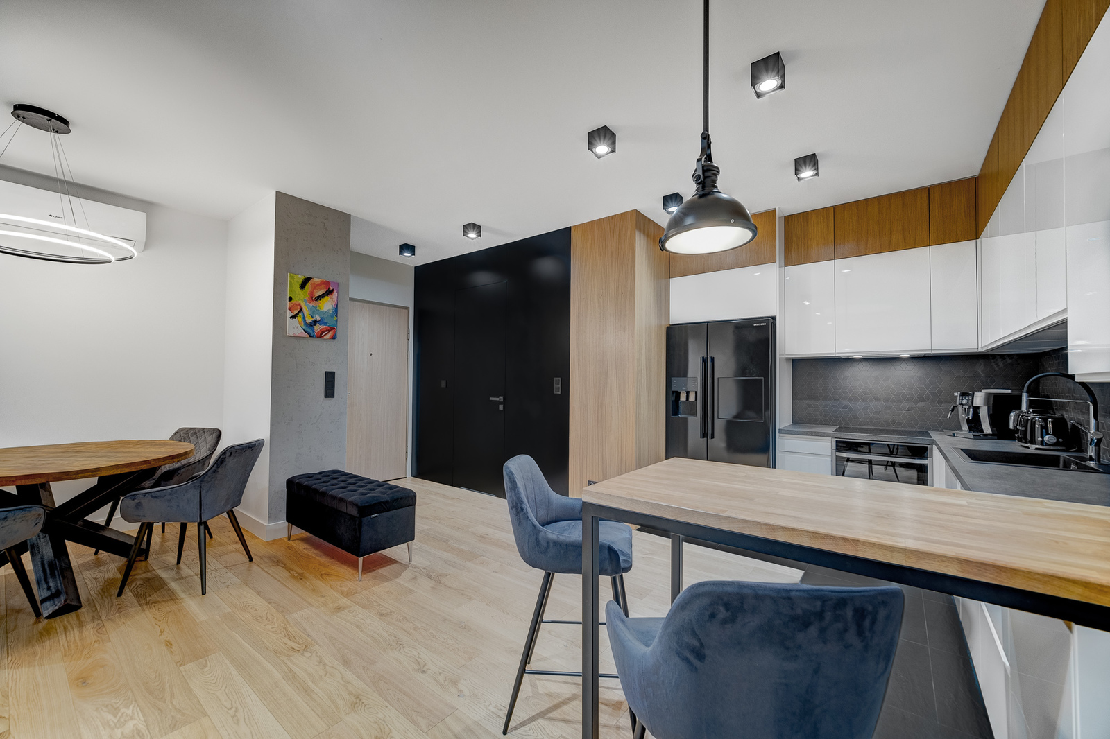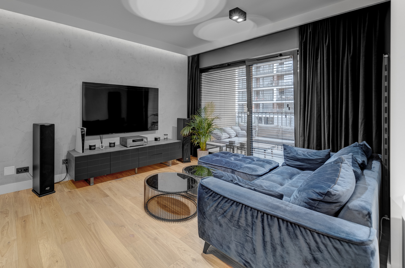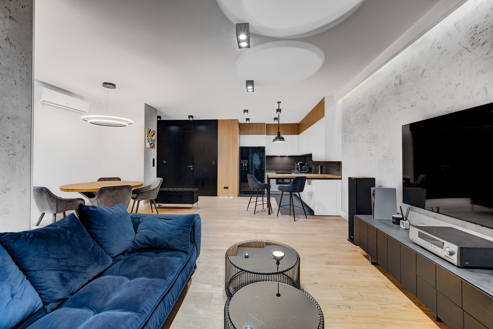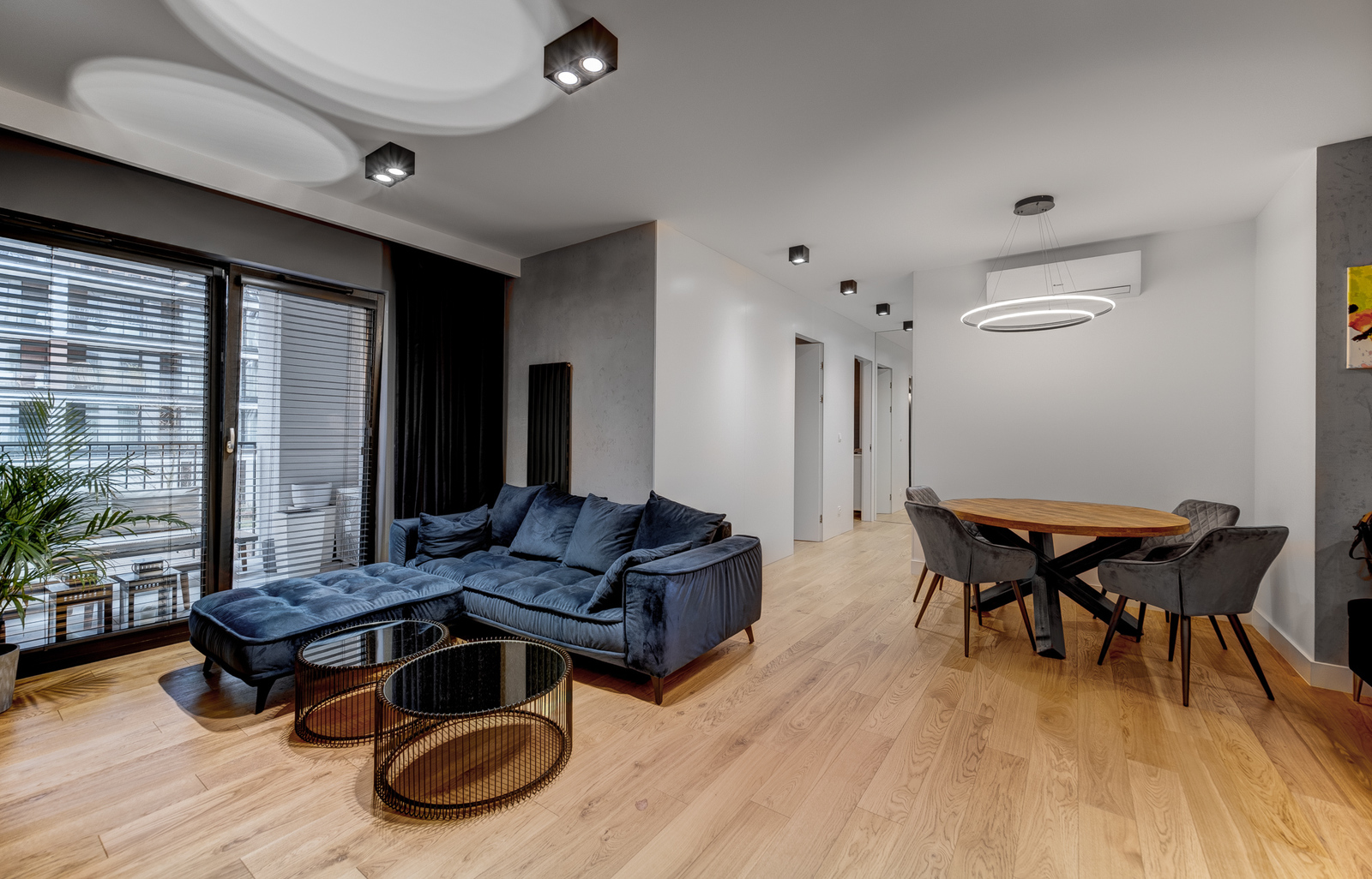 Apartament jest klimatyzowany i zaprojektowany przez architekta z dbałością o funkcjonalność nieruchomości.