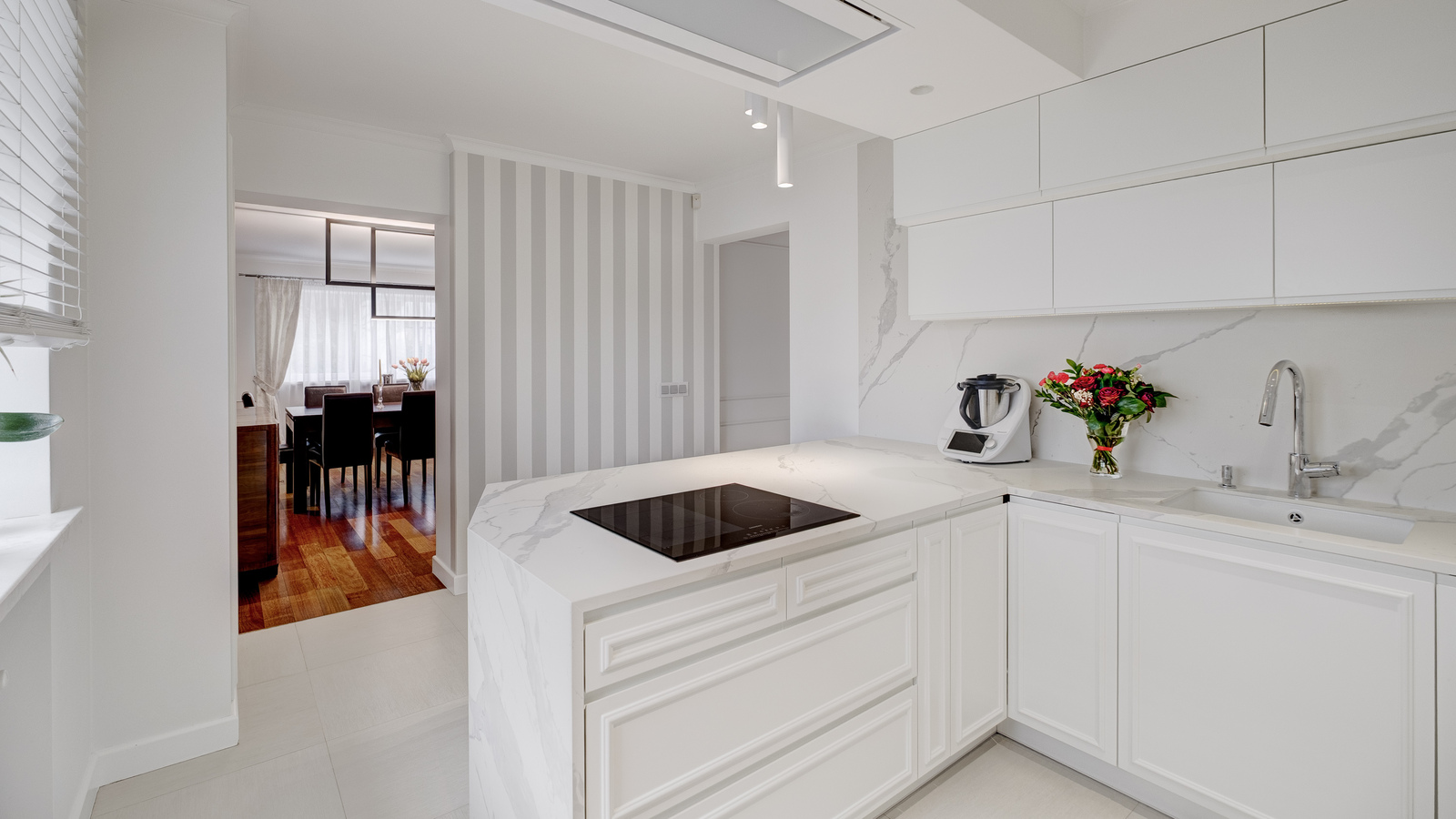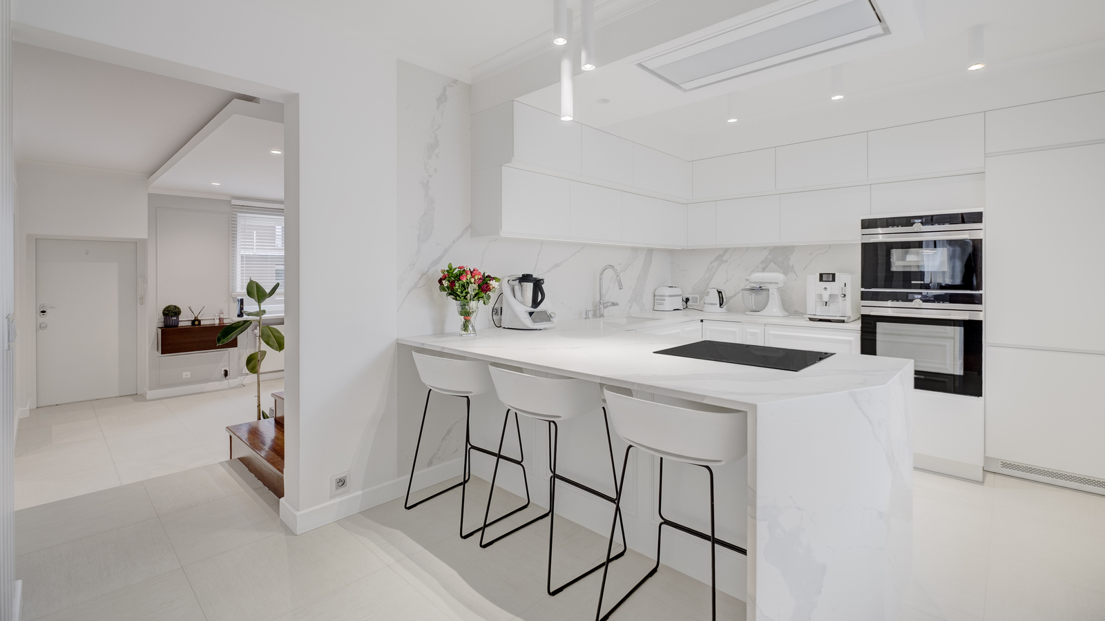 Przemyślana aranżacja, zapewnia komfort użytkowania. Przestronne pomieszczenia, bardzo staranne wykonanie. Wnętrze wykończone w wysokim standardzie- meble na zamówienie, sprzęt AGD Simens, ceramika łazienkowa Villeroy&Boch, Duravit, farby Flugger.