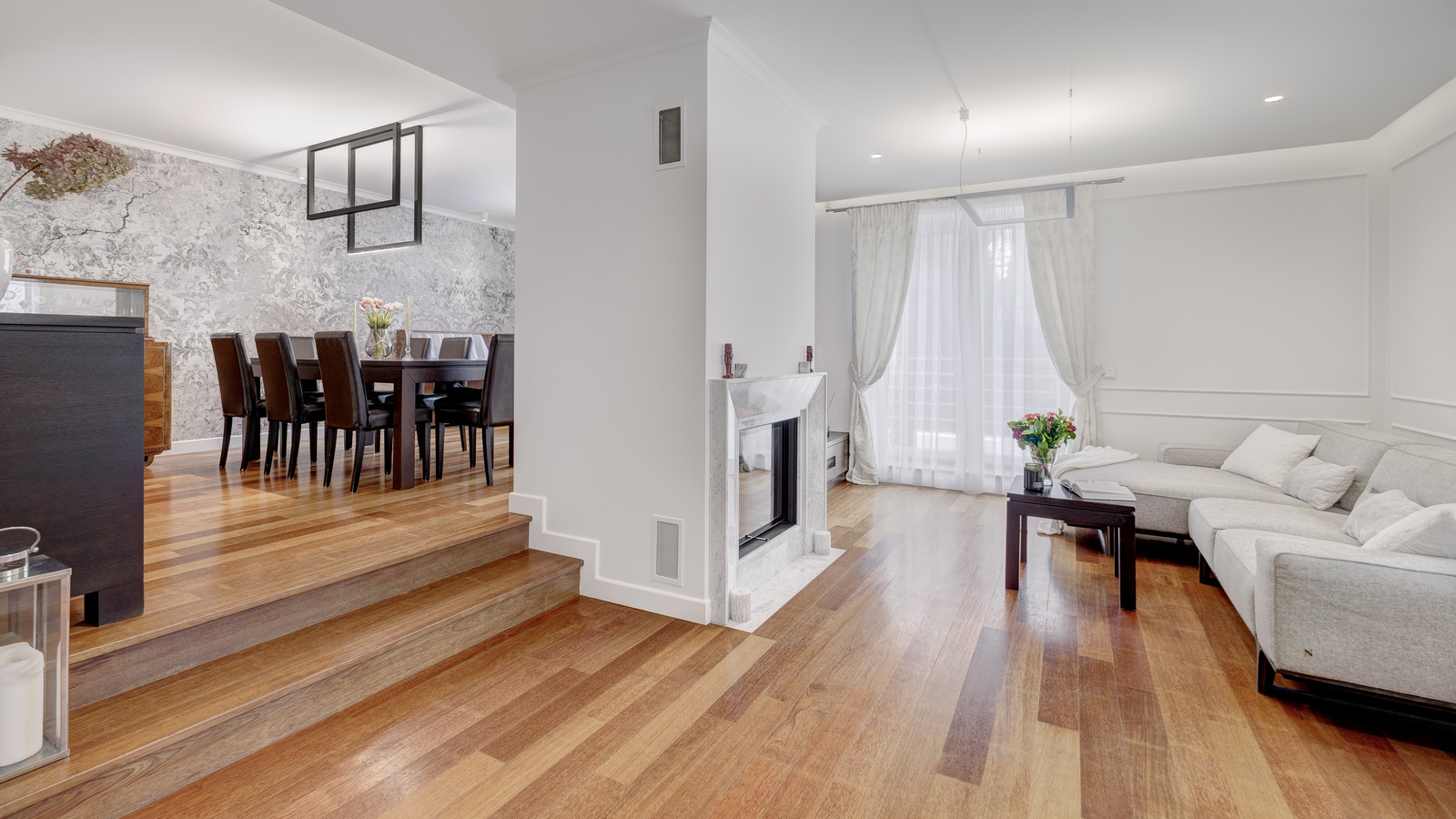 * Salonu z kominkiem oraz z wyjściem na taras (33,7m2) i ogród