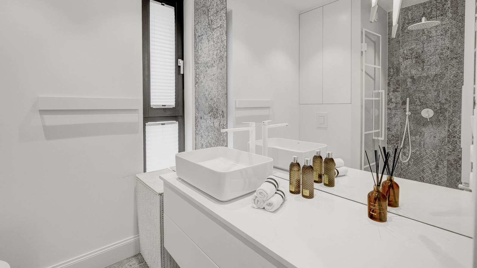 Apartament jest dwupoziomowy, klimatyzowany i zaprojektowany przez architekta z dbałością o funkcjonalność nieruchomości.