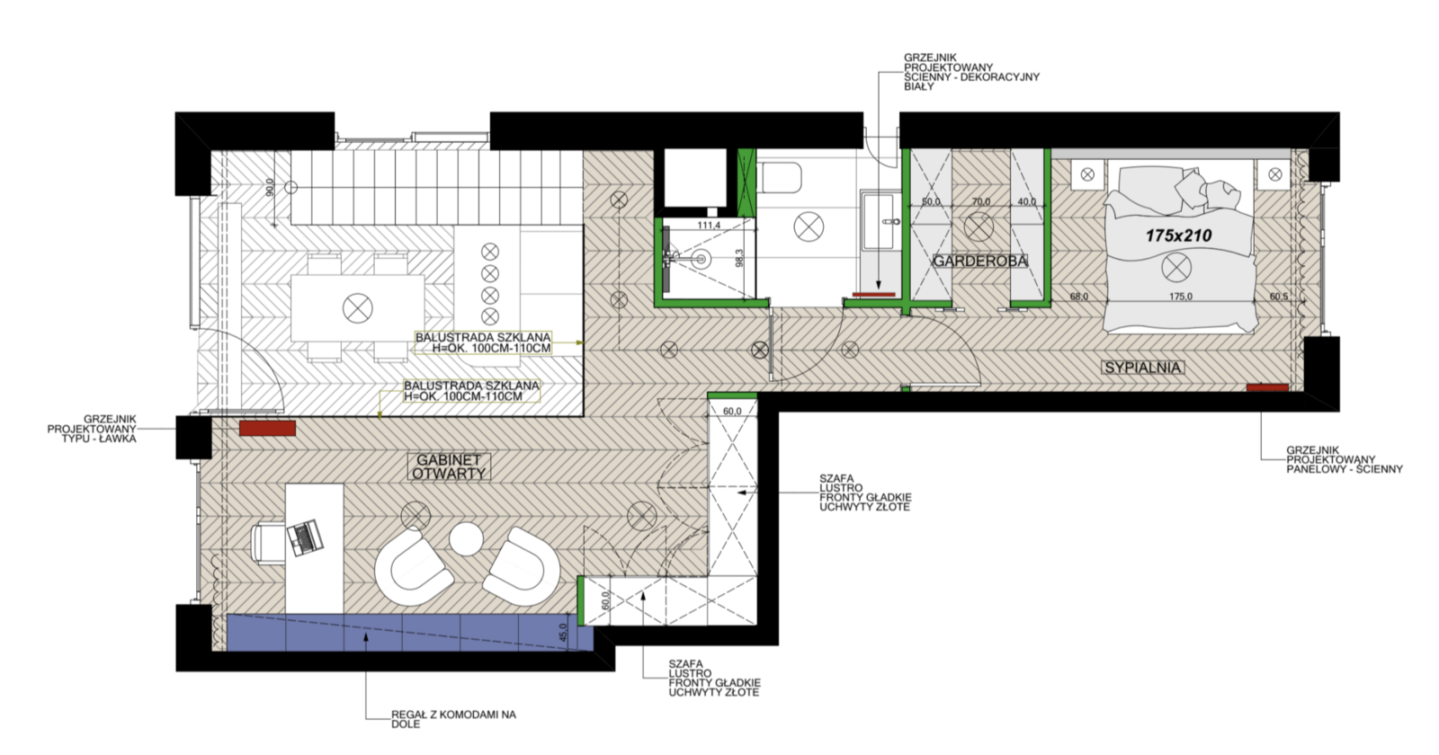 * kolejnej sypialni z garderobą