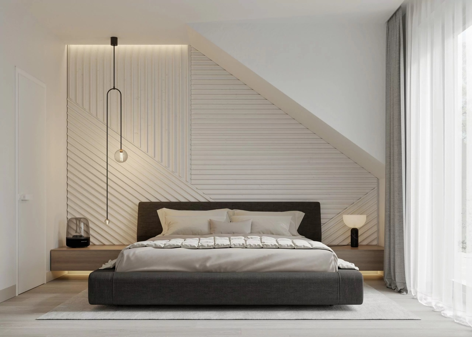* sypialnia typu master z garderobą i łazienką