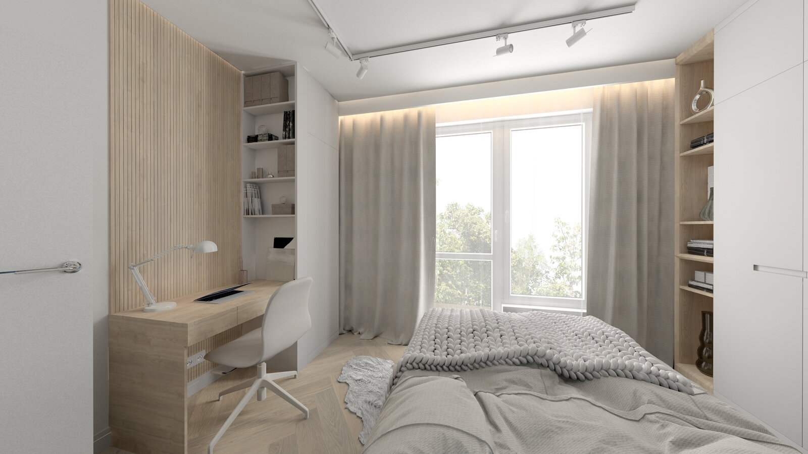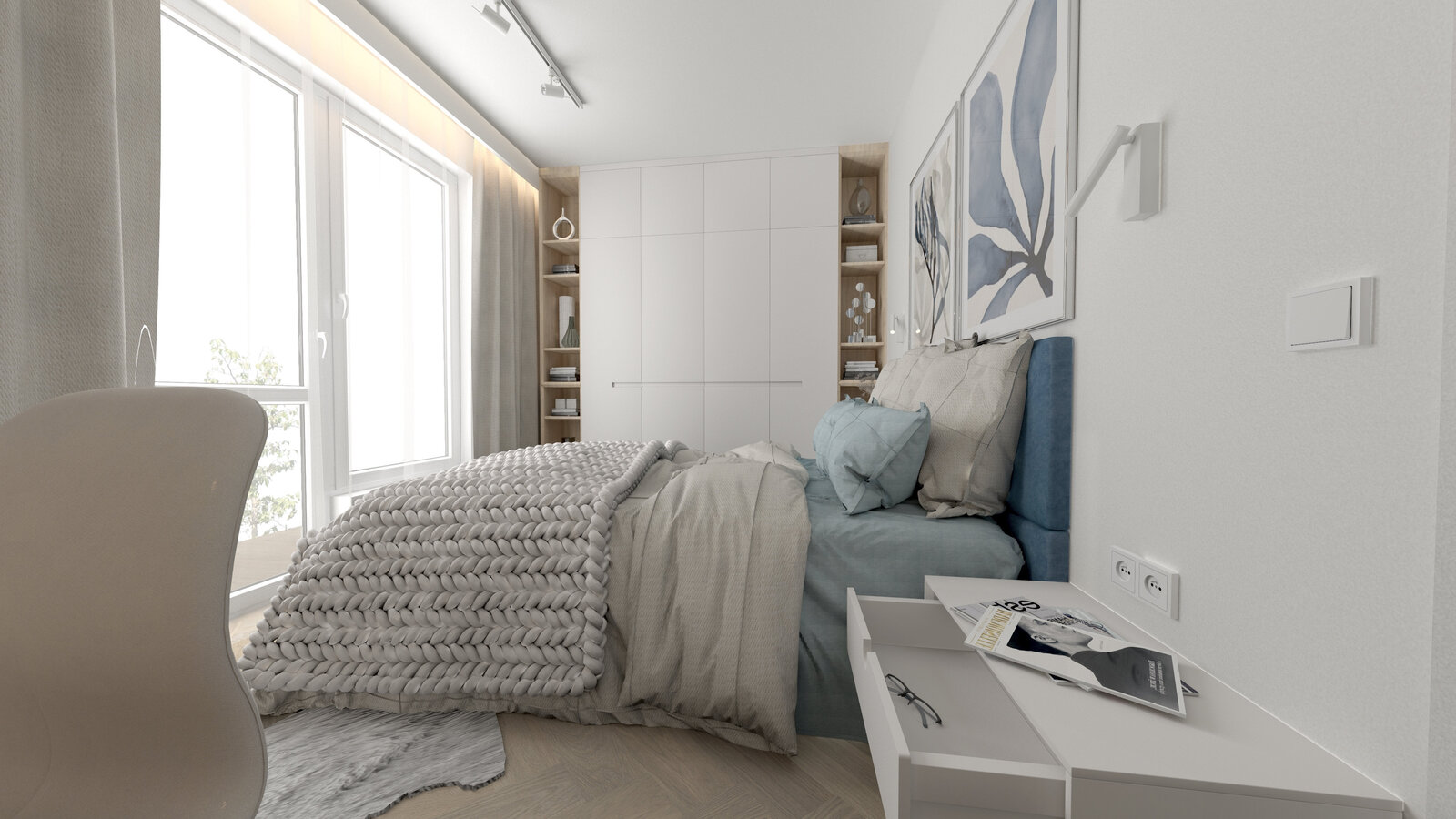 * przestronnej sypialni z dużymi zabudowanymi szafami oraz z wyjściem na balkon