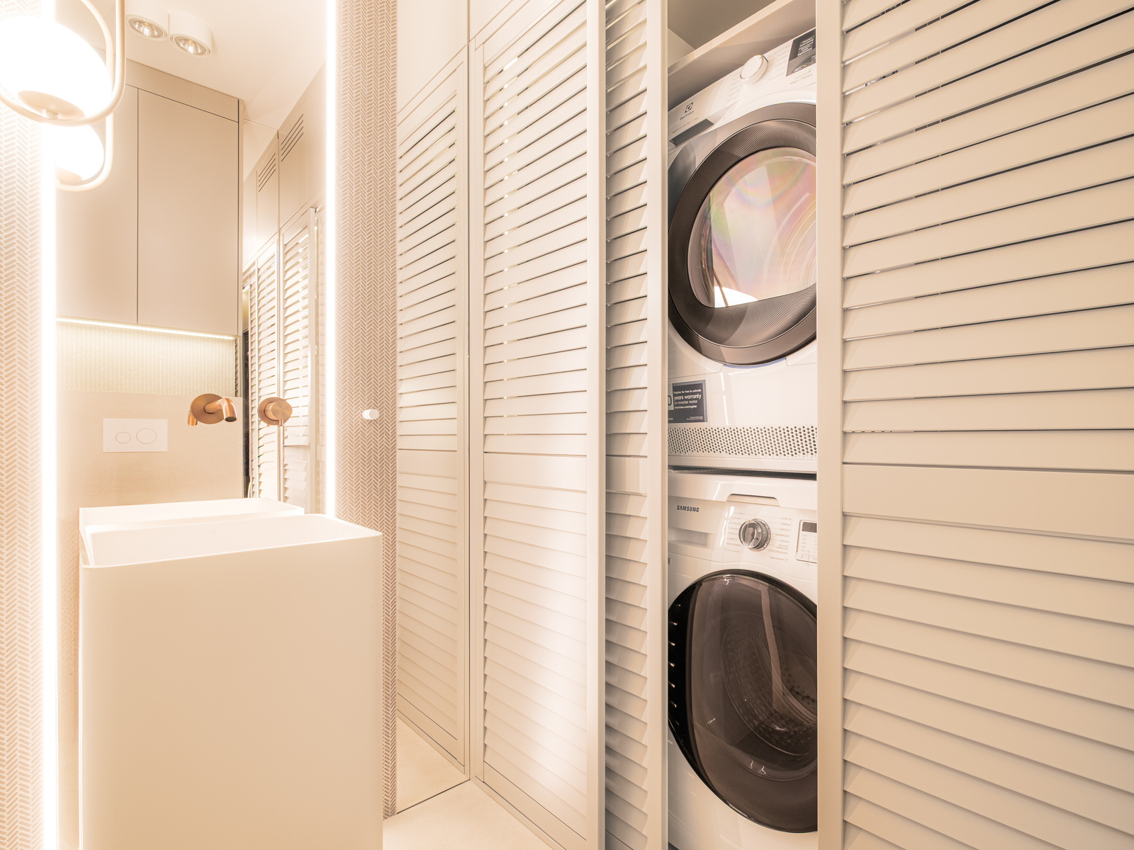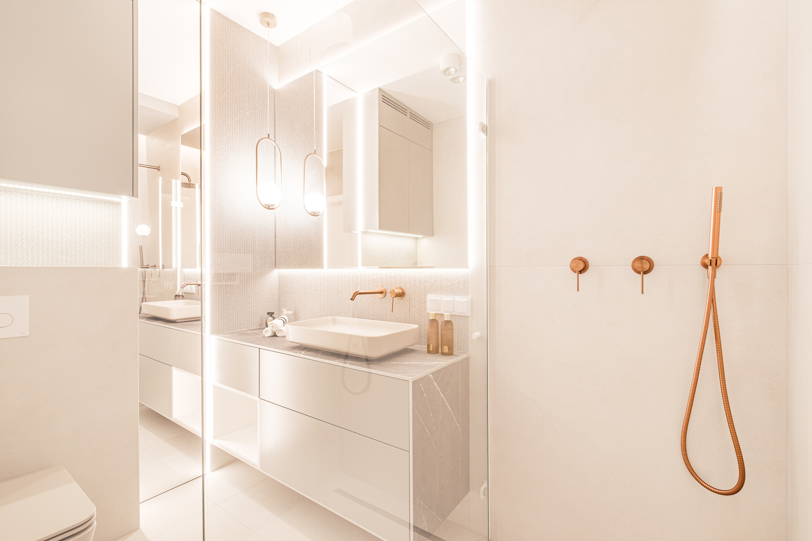 * Toalety z pralnią (pralka, suszarka, duża szafa w zabudowie)