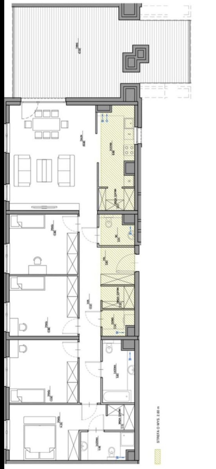 Apartament 5 pokojowy z dużym 40 metrowym tarasem położony jest na ostatnim, czwartym piętrze eleganckiego apartamentowca w nowej, prestiżowej inwestycji Royal Residence.