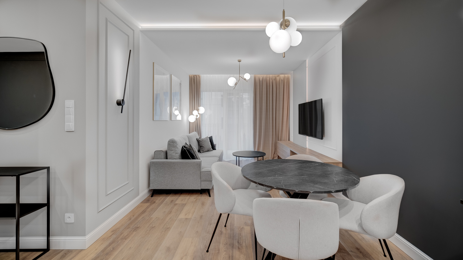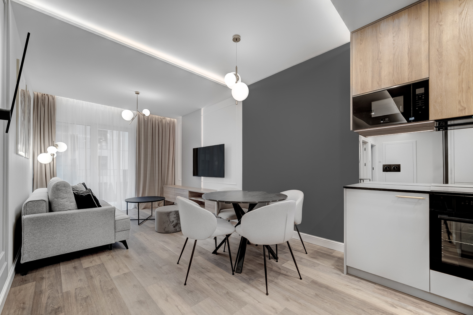 * Salonu z aneksem kuchennym oraz wyjściem na balkon