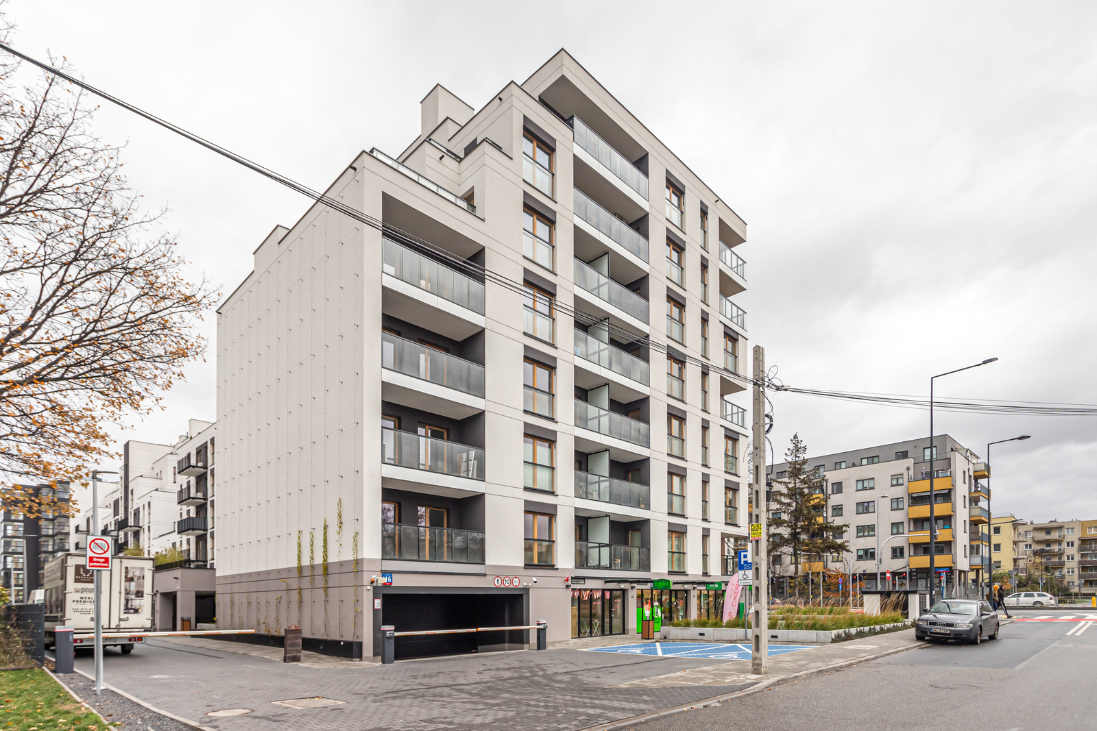 W pobliżu znajdują się także liczne sklepy, a także przystanki tramwajowe i autobusowe, dzięki którym już teraz komunikacja z pozostałymi częściami miasta jest łatwa i szybka.
