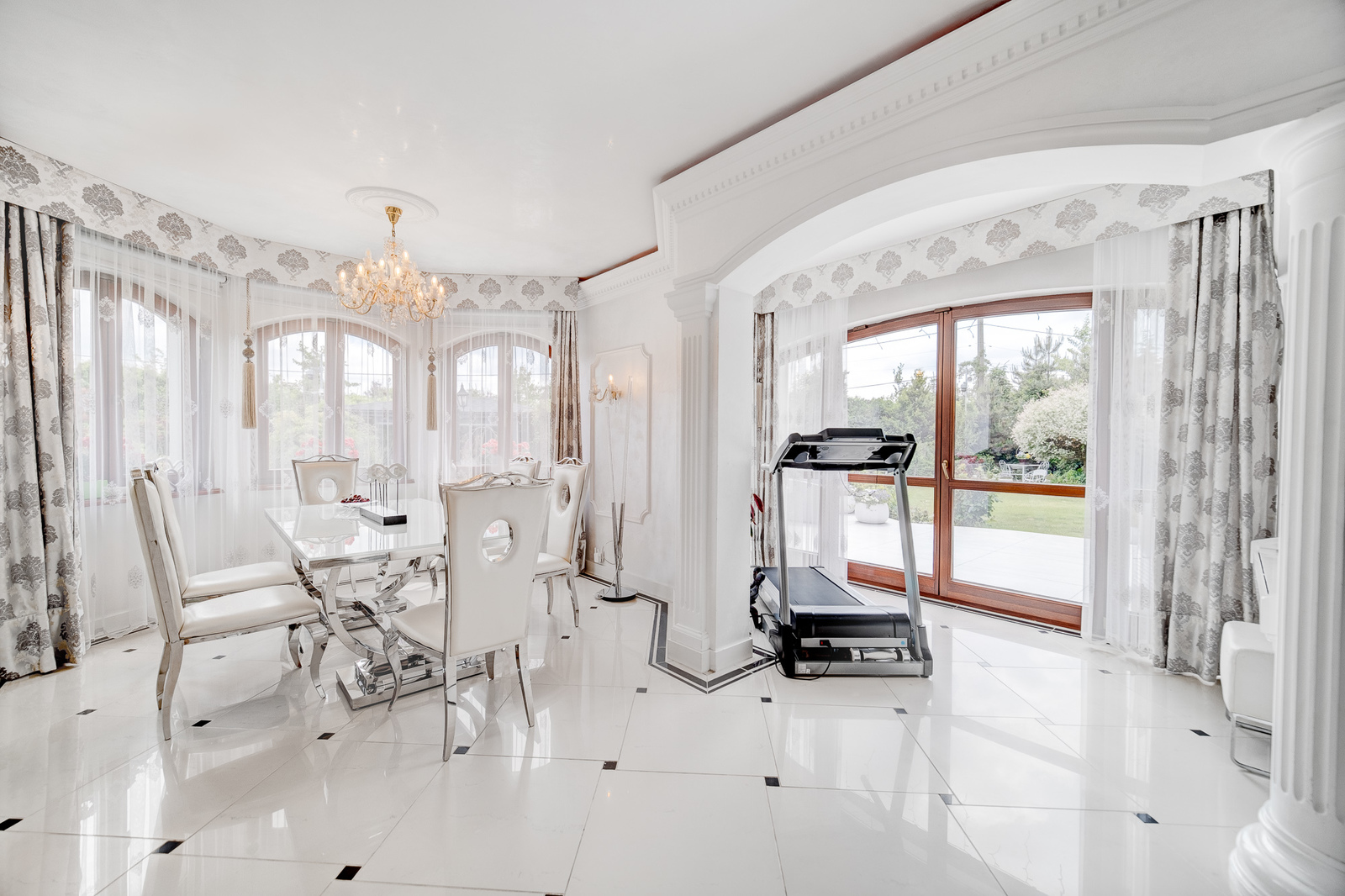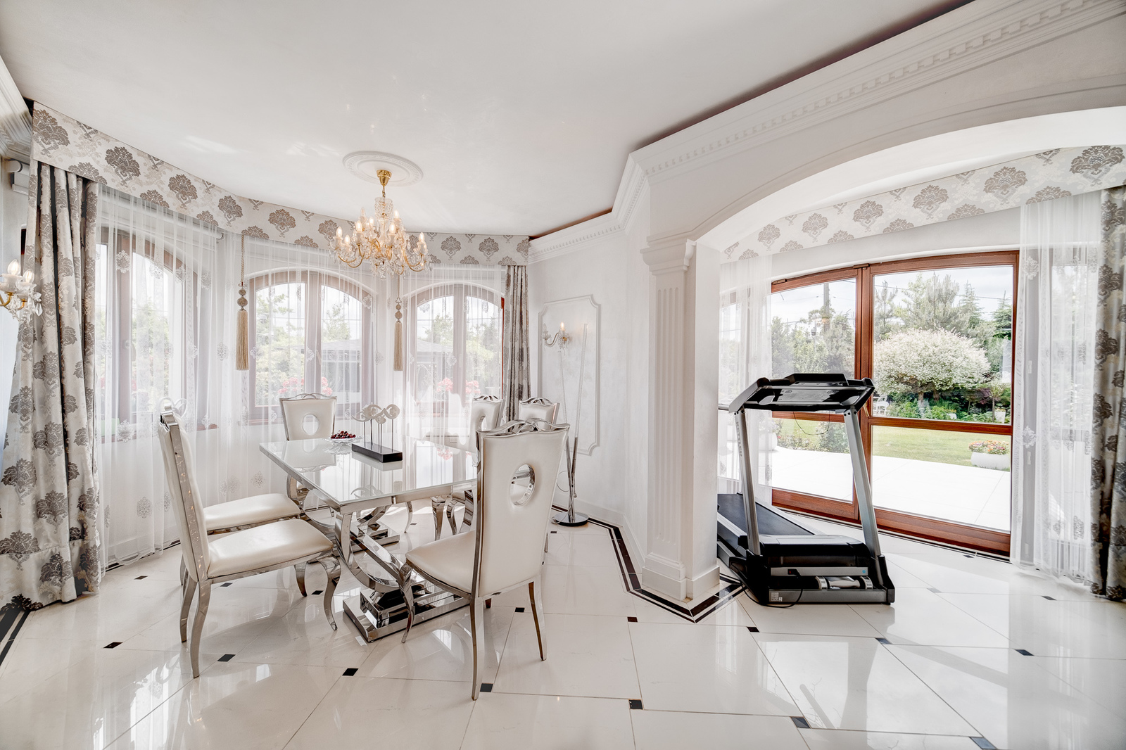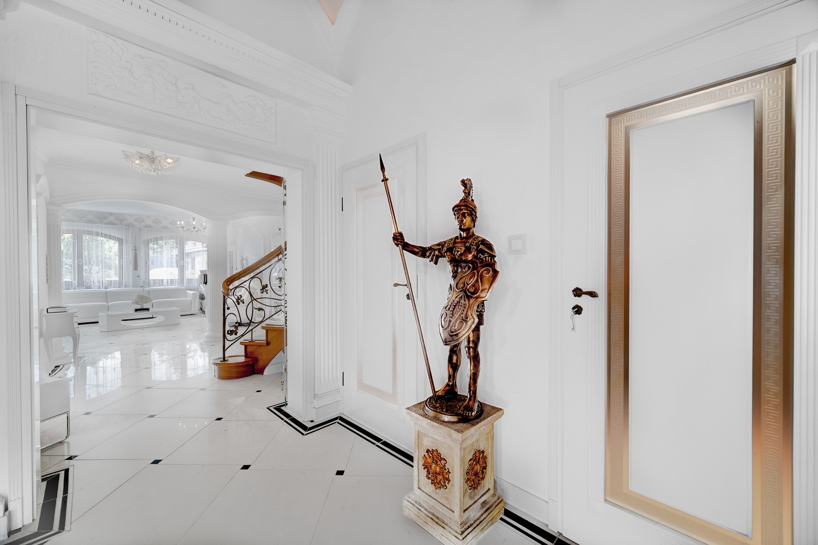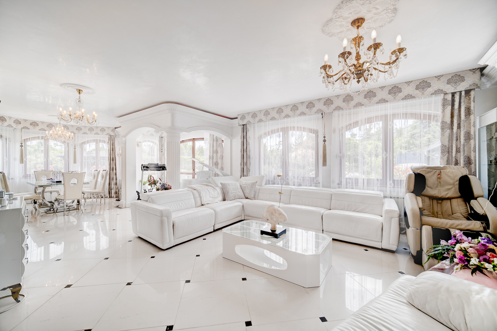 W dużym domu piękny biżuteryjny okap, opuszczany w dół. Farba zmywalna – atico damasco. Sufit ze z drobinkami złota – sufity napinane. Sztukateria. Podgrzewane tarasy i wjazd do garażu, by nie trzeba było zima odśnieżać. Centralne odkurzanie. Marmurowe blaty. 2 agregaty prądotwórcze do których podłączony jest prąd i gaz – pełna niezależność gdy będzie taka potrzeba.