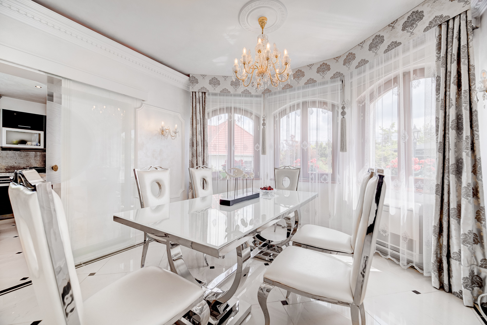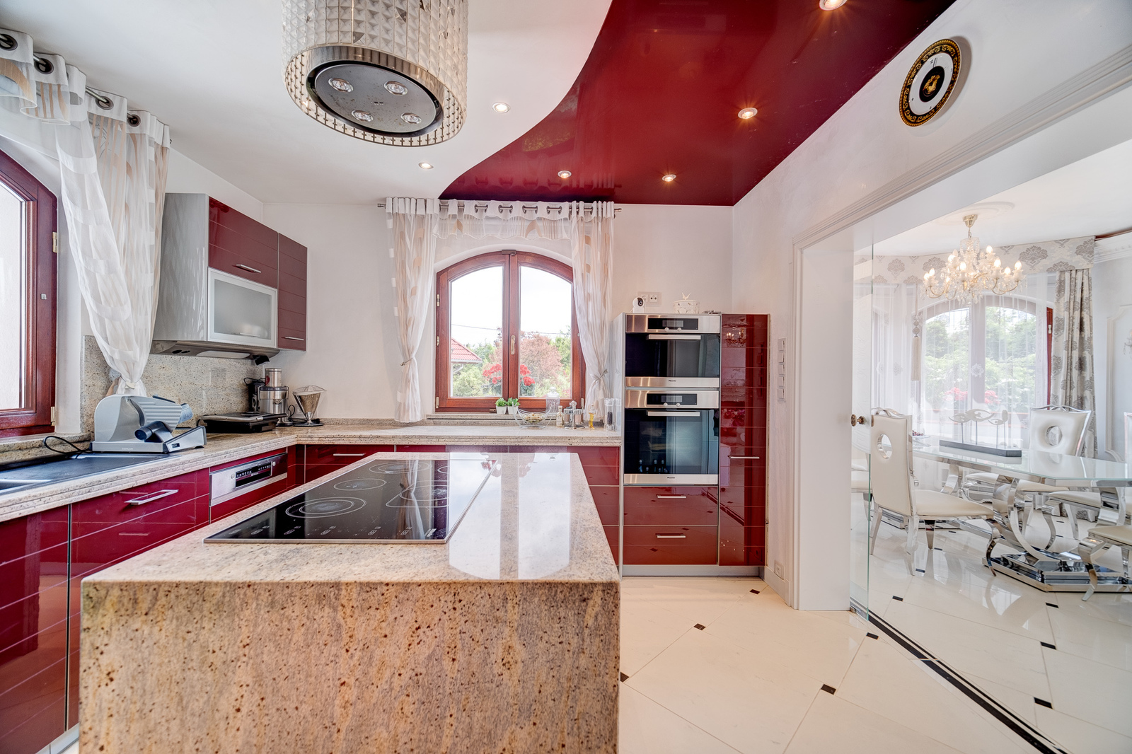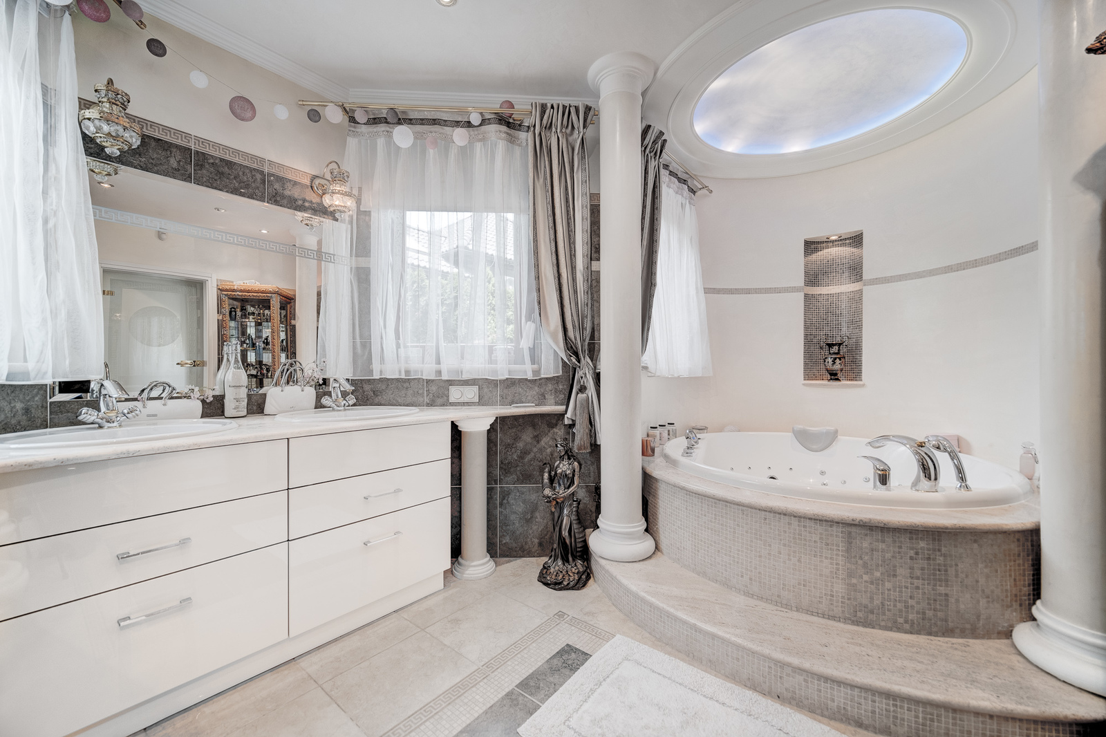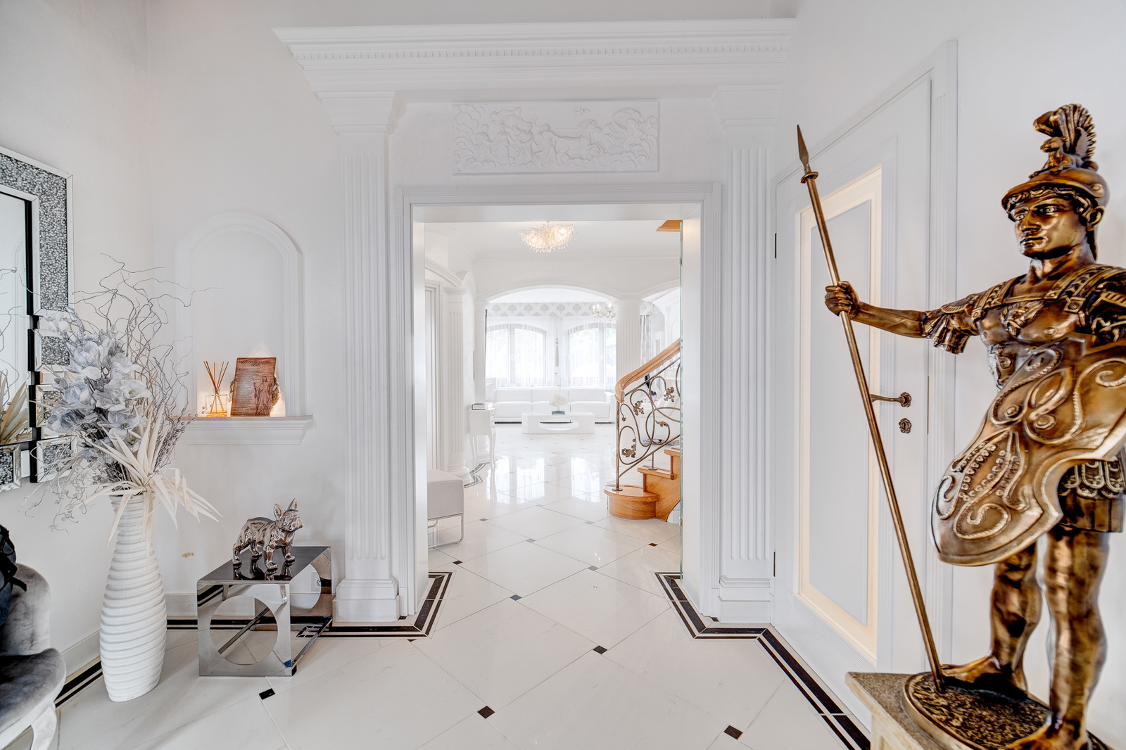 W dużym domu piękny biżuteryjny okap, opuszczany w dół. Farba zmywalna – atico damasco. Sufit ze z drobinkami złota – sufity napinane. Sztukateria. Podgrzewane tarasy i wjazd do garażu, by nie trzeba było zima odśnieżać. Centralne odkurzanie. Marmurowe blaty. 2 agregaty prądotwórcze do których podłączony jest prąd i gaz – pełna niezależność gdy będzie taka potrzeba.