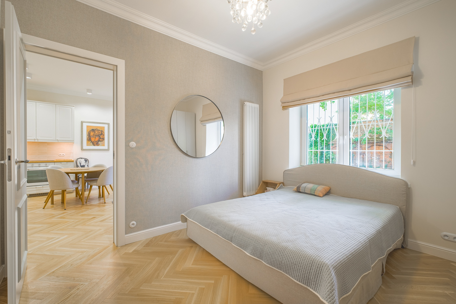 Apartament położony na parterze kamienicy z 1938 r jest po całkowitym generalnym remoncie. Nowy, śliczny, pachnący, wykończony z dużym gustem i dbałością o detal.