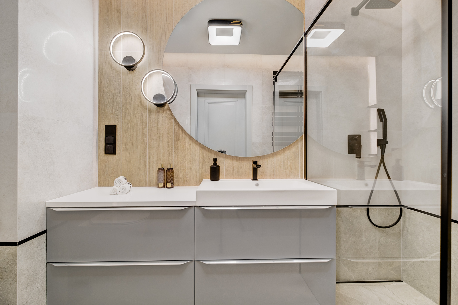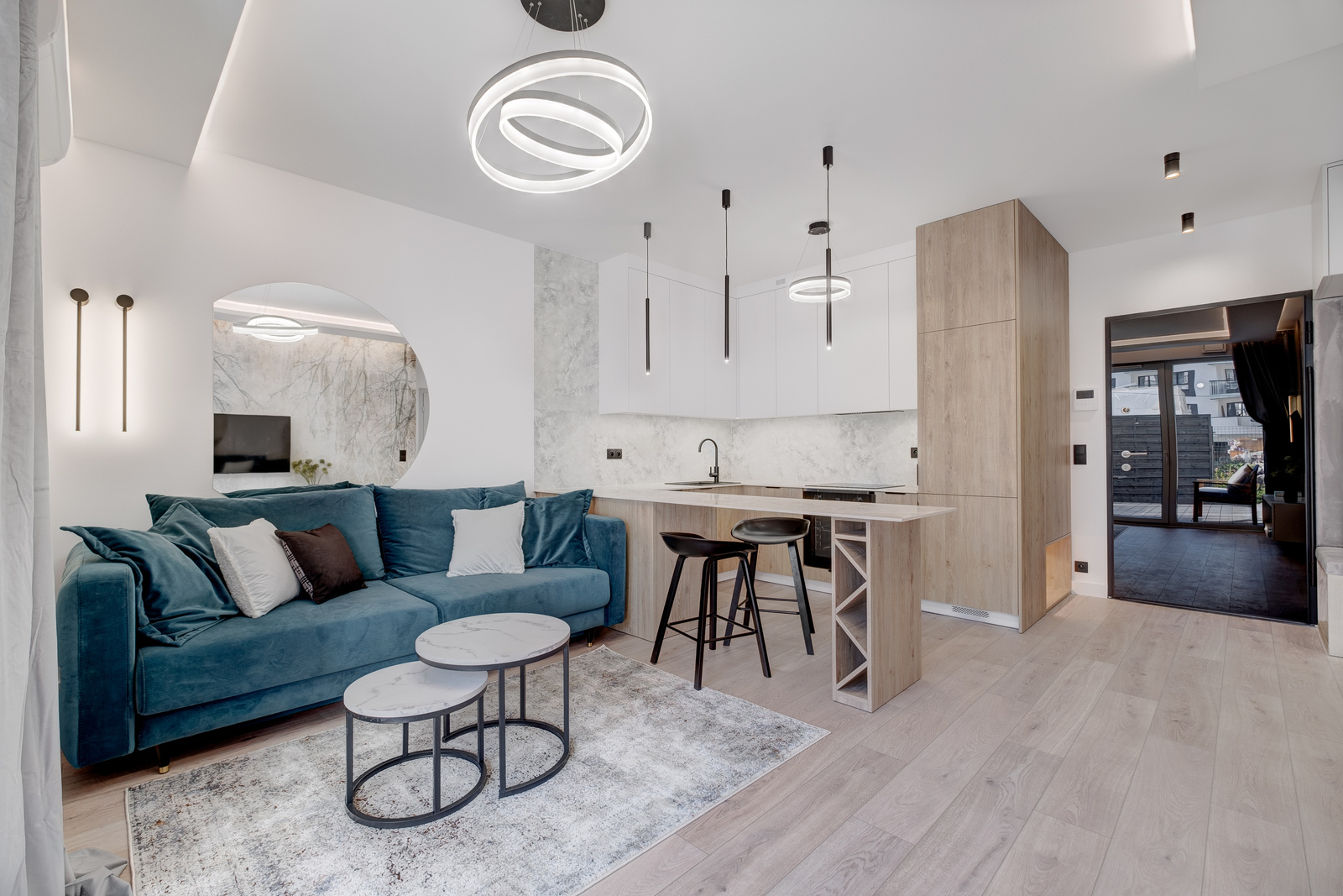 Apartament został zaprojektowany z myślą o funkcjonalności oraz nowoczesnym minimalizmie. Mieści się na parterze 4 piętrowego budynku.