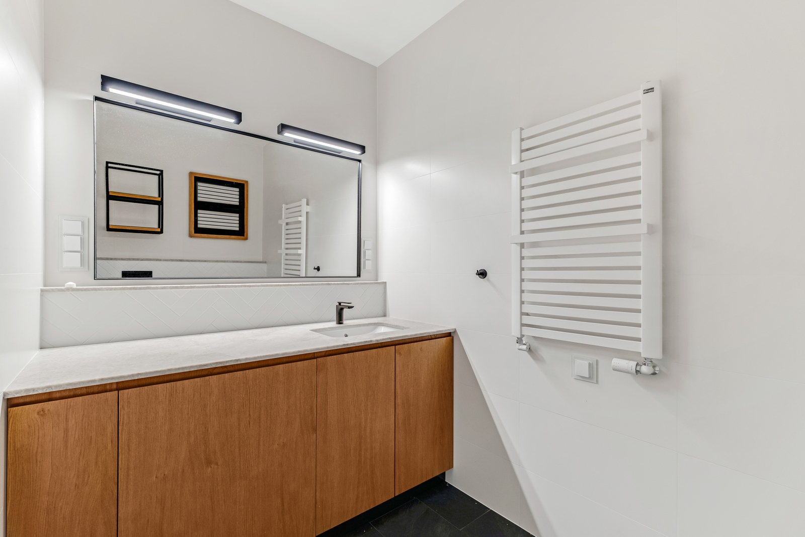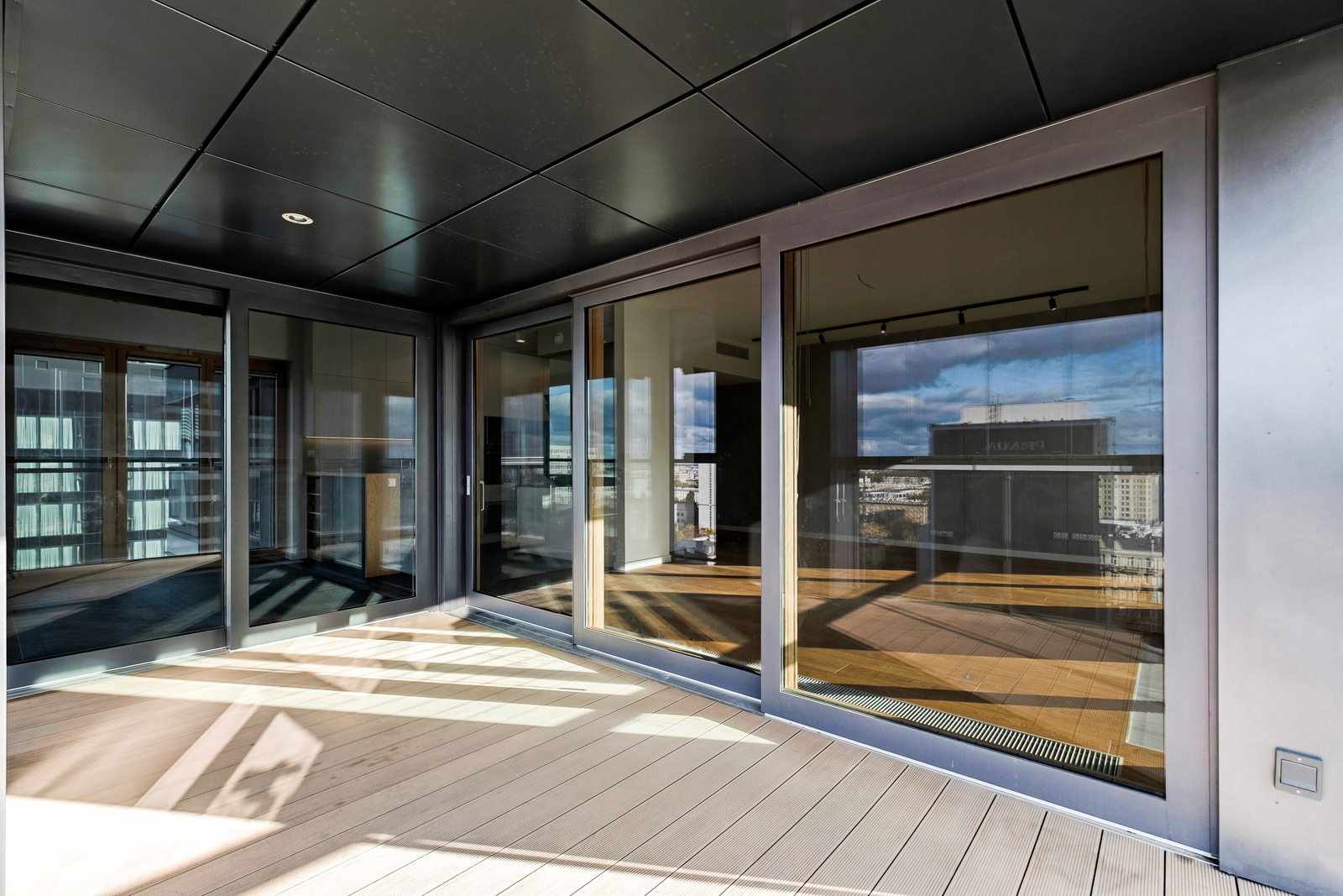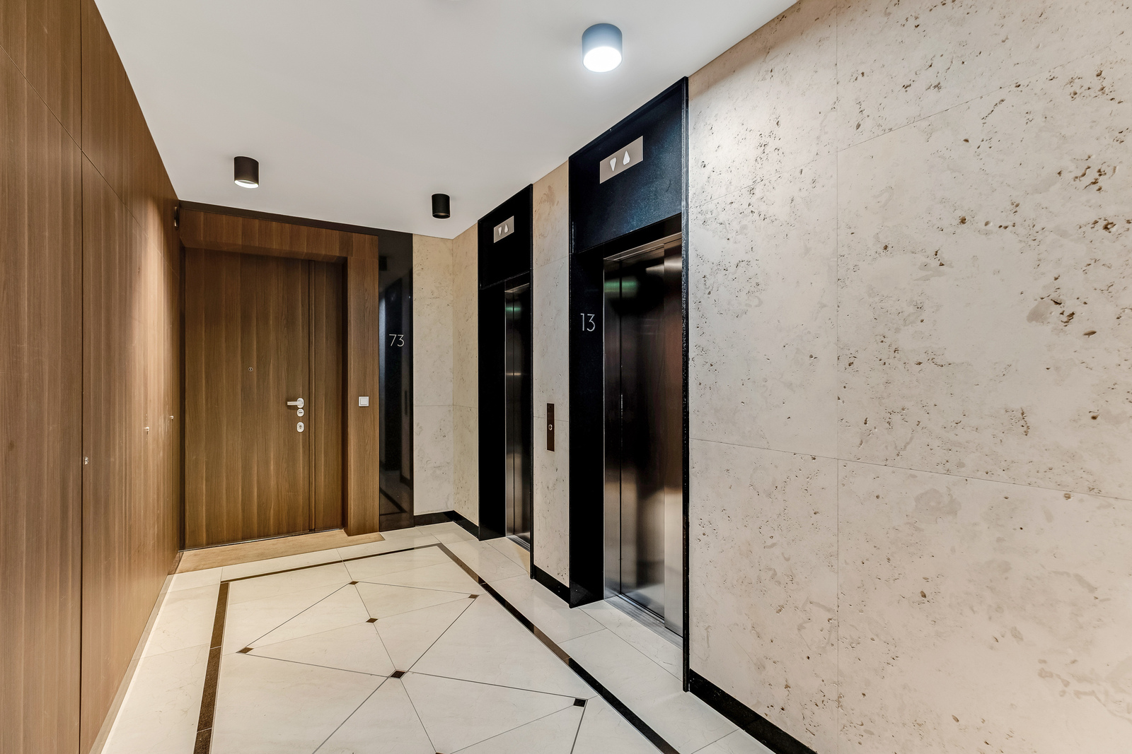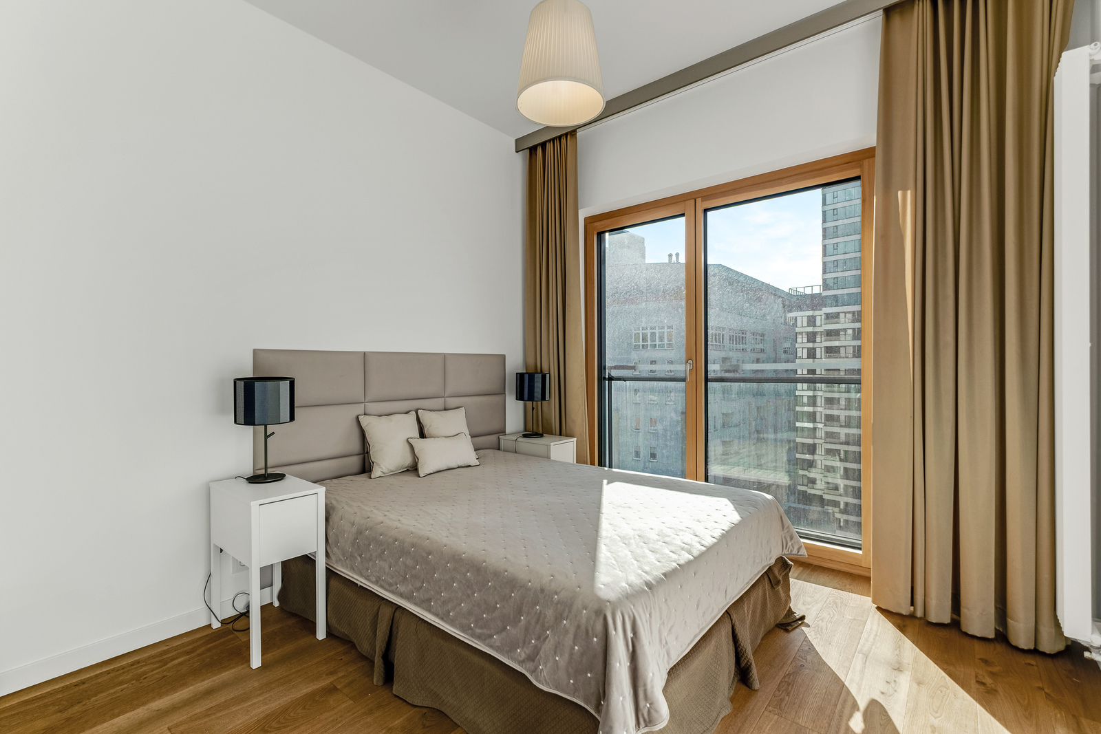 Apartament znajduje się na jednym z dwóch ostatnich pięter wieży, co zapewnia ponadstandardową wysokość pomieszczeń (powyżej 3 metrów) oraz fabryczną preinstalację klimatyzacji. To rzadka cecha w Mennica Residence, która znacząco zwiększa poczucie przestrzeni i prestiżu.